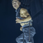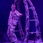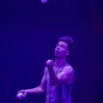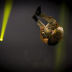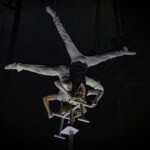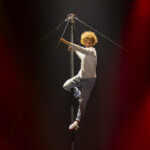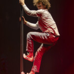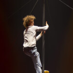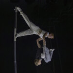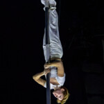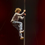 Mit Humor: Jon Young’s Performance am Chinese Pole ist wahrlich einzigartig. Wuschlige Frisur und die ausdrucksstarke Mimik verleihen ihm Charakter, während er den Pole mit beeindruckender Geschicklichkeit erklimmt und auf verschiedenste Weisen wieder herunterrutscht. Mal kopfüber, mal für einen flüchtigen Moment sogar ohne jeglichen Kontakt zum Pole. Der herrlich schüchtern auftretende Künstler Jon Young verwebt geschickt die beiden Zirkusdisziplinen Akrobatik und Comedy.