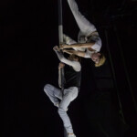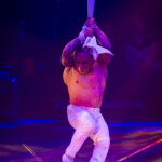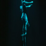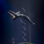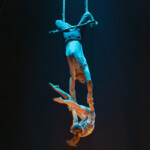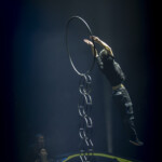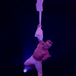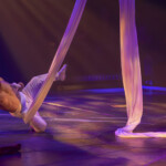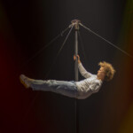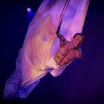 Poesie in der Luft: Alan Silvas ist charismatisch, emotional und sinnlich, ob auf dem Boden oder in der Luft. Mit seiner fesselnden Ausstrahlung bewegt er sich durch die Manege, als würde er tanzen. Jeder Schritt, jede Geste spiegelt eine tief empfundene Leidenschaft für die Kunst der Luftakrobatik, Eleganz und Ästhetik wider. Fast scheint er in den fließenden Seidentüchern, die vom Zeltdach hängen, durch die Manege zu schweben.