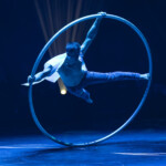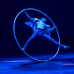 Völlig durchgedreht: Artsiom Haurylik wirbelt geschickt und kunstvoll mit scheinbarer Leichtigkeit, Schwerelosigkeit und Eleganz im Cyr Wheel durch die Manege. Es besteht im Gegensatz zum Rhönrad nur aus einem Reifen und wird dadurch wesentlich schneller und dynamischer. Haurylik lässt Cyr Wheel zu seinem Tanzpartner werden und vollführt faszinierende Drehungen.