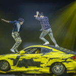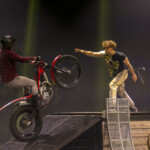 Nervenkitzel pur: Christophe and Partner, vereinen in ihrem nervenaufreibenden Act Trial + Freerunner Balance-Elemente, Sprungakrobatik und waghalsige Stunts. Für sie ist kein Hindernis zu hoch, keine Rampe zu steil und kein Raum zu eng. Die Kombination aus akrobatischen Fähigkeiten und der Furchtlosigkeit der Performer begeistern auch das Dortmunder Publikum.