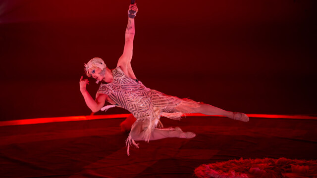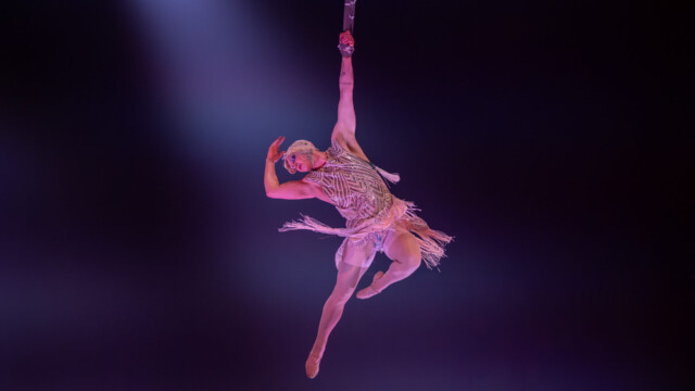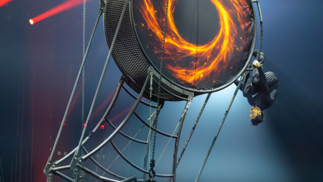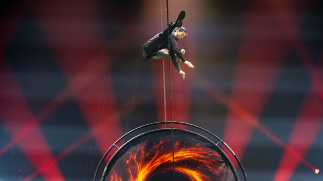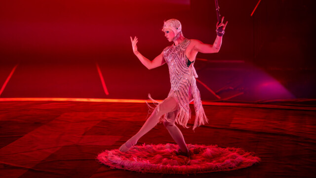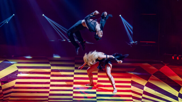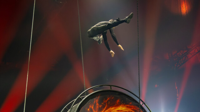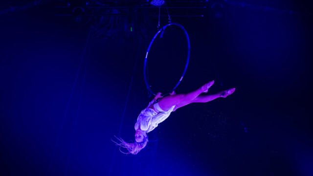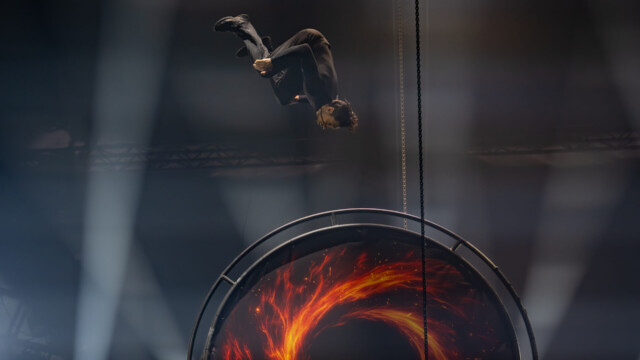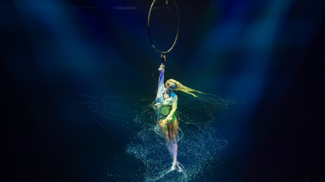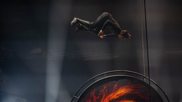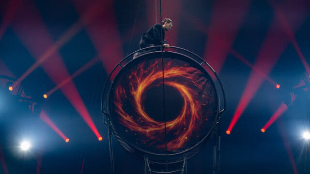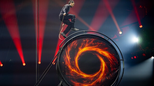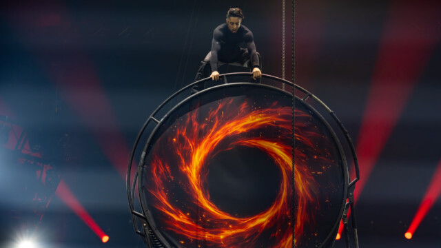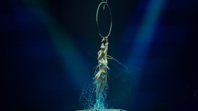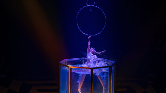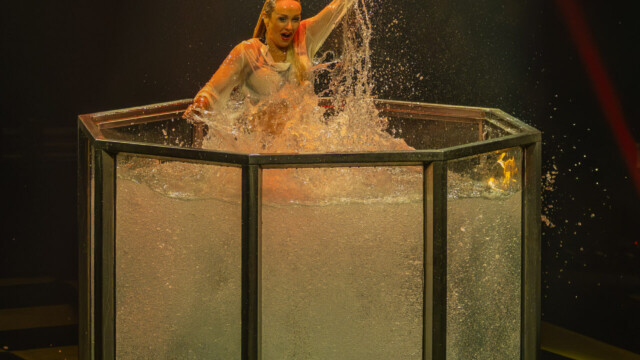 Einen atmosphärischen Akzent setzt Laura Miller. Wenn sie aus dem gläsernen Bassin mit ihrem Luftring in die Höhe schießt, entsteht ein kraftvolles Zusammenspiel aus Licht, Höhe und Bewegung. Die Nummer bleibt durchgehend dynamisch, steigert kontinuierlich Spannung und Tempo und fügt sich nahtlos in das Gesamtbild der Show ein.