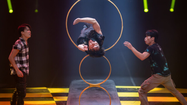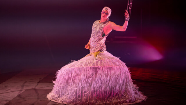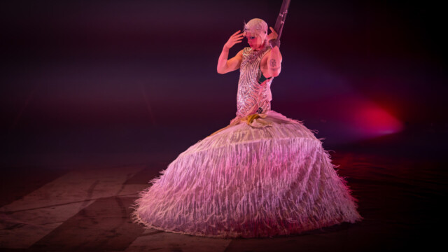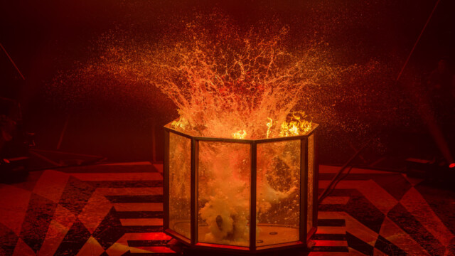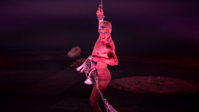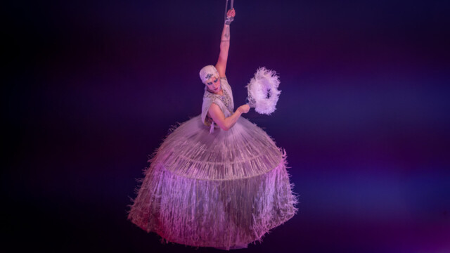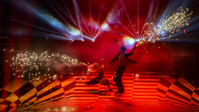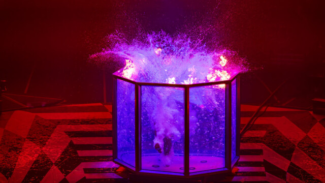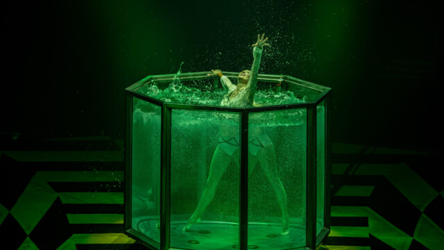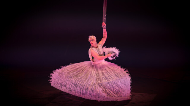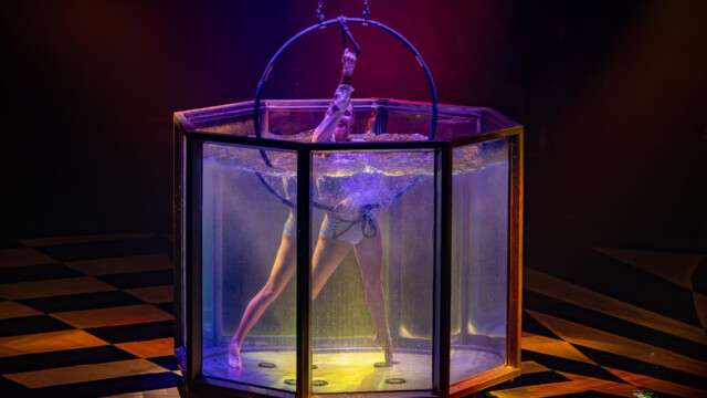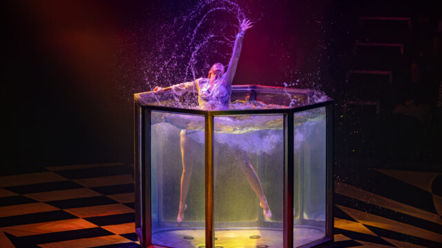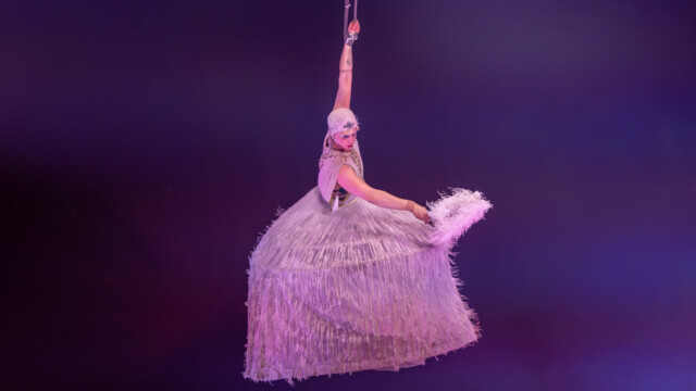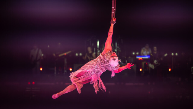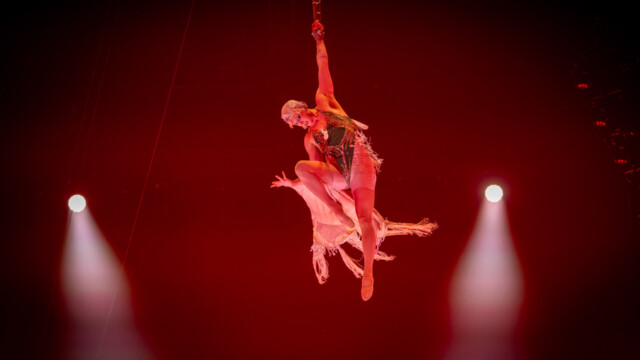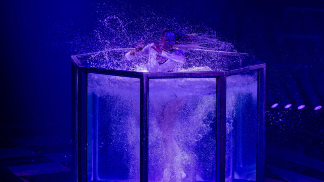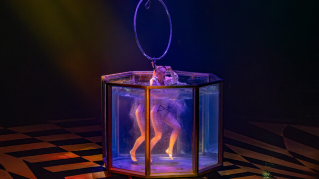 Einen atmosphärischen Akzent setzt Laura Miller. Wenn sie aus dem gläsernen Bassin mit ihrem Luftring in die Höhe schießt, entsteht ein kraftvolles Zusammenspiel aus Licht, Höhe und Bewegung. Die Nummer bleibt durchgehend dynamisch, steigert kontinuierlich Spannung und Tempo und fügt sich nahtlos in das Gesamtbild der Show ein.
