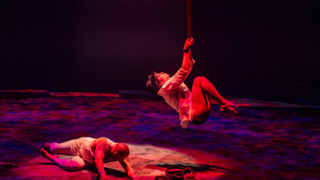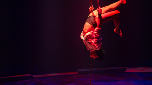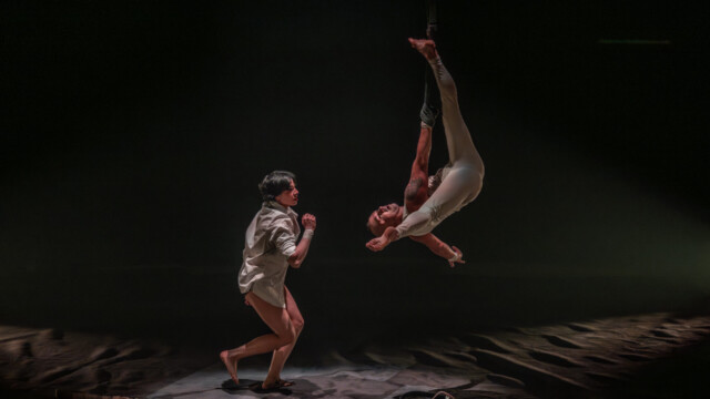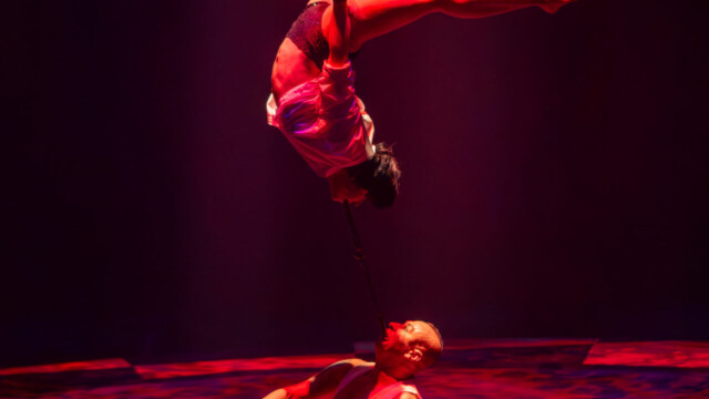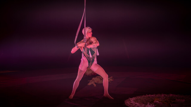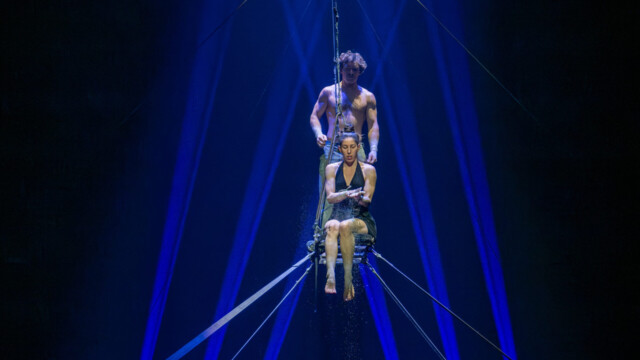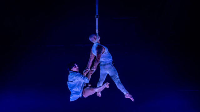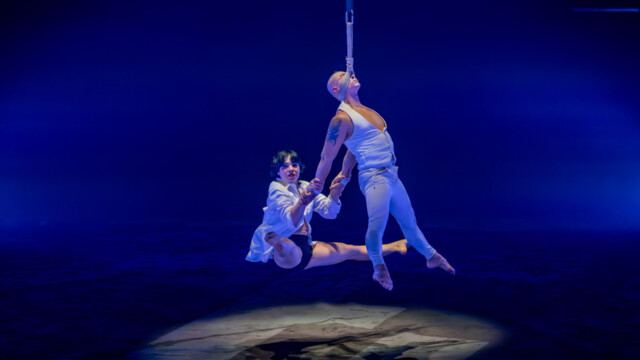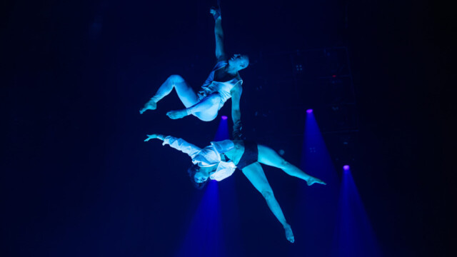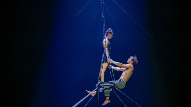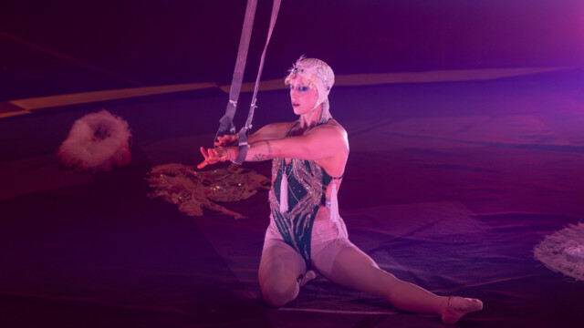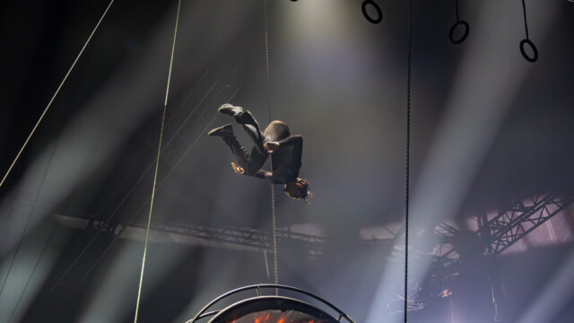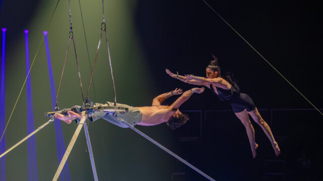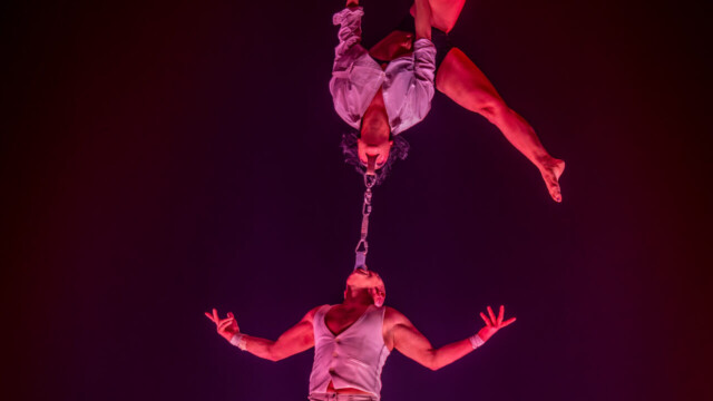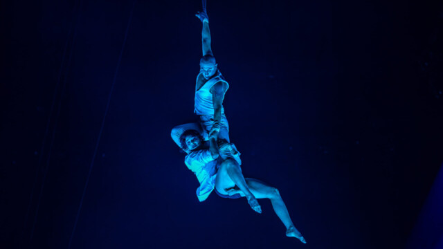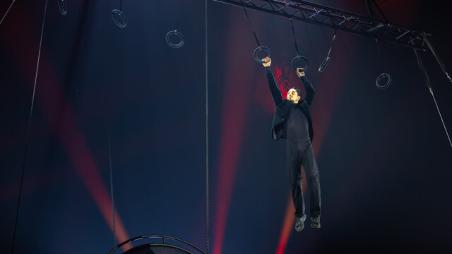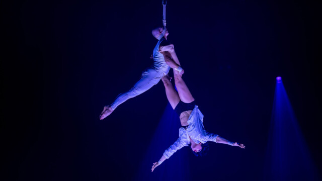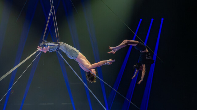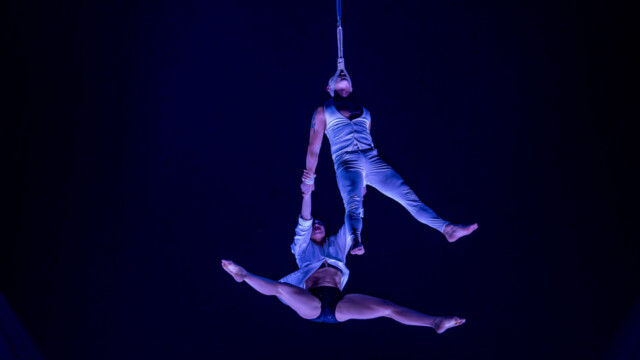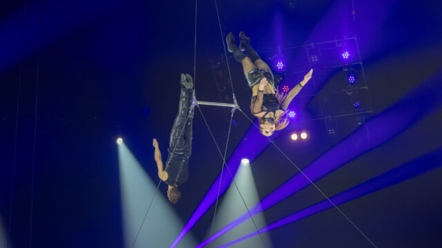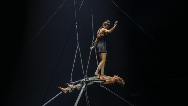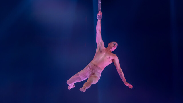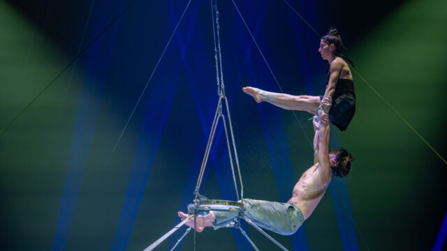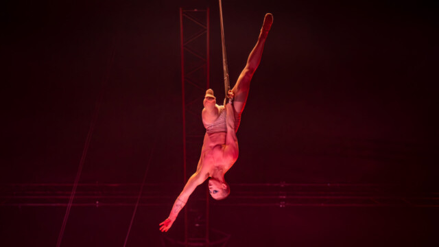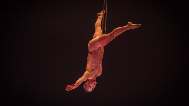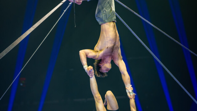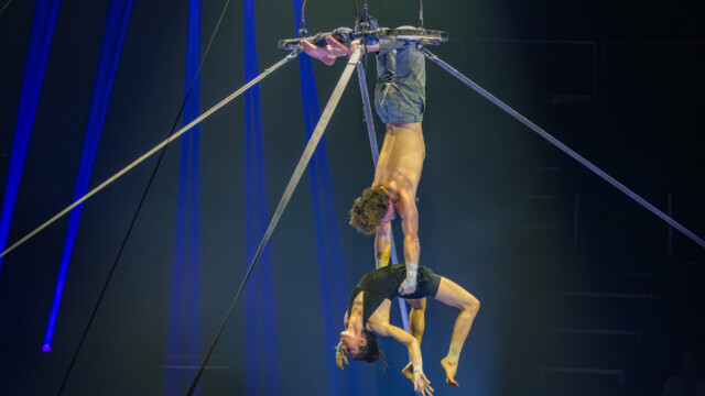 Mit dem Duo Requiem verlagert sich der Fokus auf Kraft, Kontrolle und Körperspannung. In ihrer Strapaten-Nummer setzen die beiden Artisten auf saubere Linien, kontrollierte Übergänge und eine ruhige Dramaturgie. Die reduzierte Inszenierung unterstreicht dabei die technische Qualität der Darbietung.
