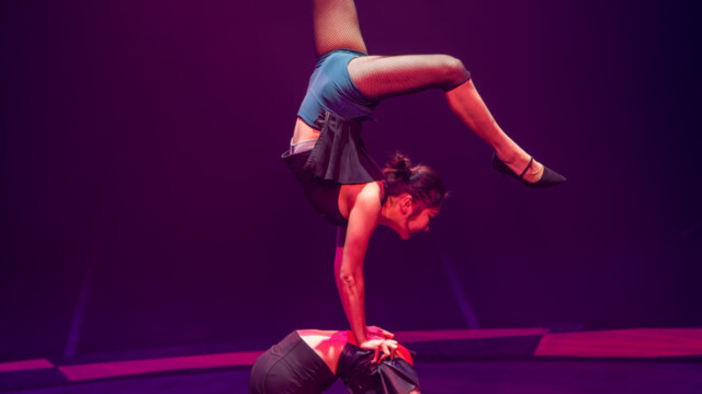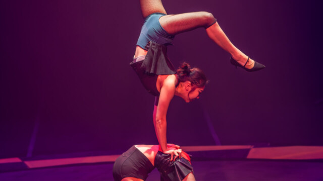 Einen deutlichen Tempowechsel bringt das Duo Exit 15. Ihre Darbietung verbindet Höhe, Kraft und Bewegung zu einer technisch anspruchsvollen Nummer, die insbesondere durch schnelle Wechsel und hohe körperliche Belastung auffällt.