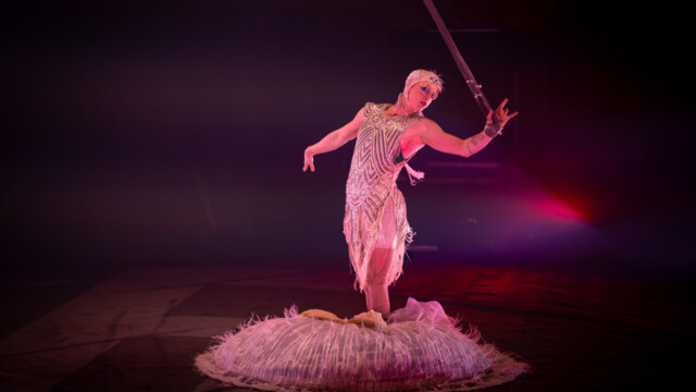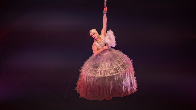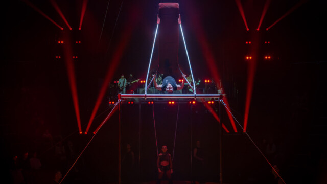 Barbette arbeitet mit maximaler Präzision. In großer Höhe zeigt sie eine konzentrierte, klar strukturierte Nummer, nur an einer Schlaufe hängend. Absolute Körperbeherrschung und exakte Kontrolle bestimmen diese Darbietung, die sich bewusst von den dynamischen Acts abhebt und einen besonderen Spannungsraum schafft – eines der absoluten Highlights des Abends.