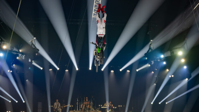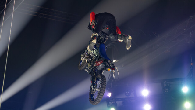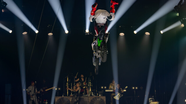 Für einen der lautesten und publikumswirksamsten Momente sorgen die Mad Flying Bikes. Mit ihren Motorrädern nutzen sie den Raum der Manege bis unter die Zeltkuppel aus und liefern eine Abfolge kraftvoller Sprünge, die das klassische Flic-Flac-Prinzip von Risiko und Dynamik konsequent fortführen.