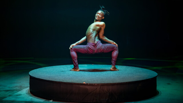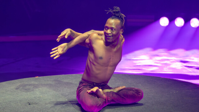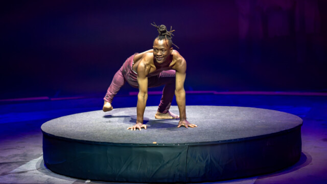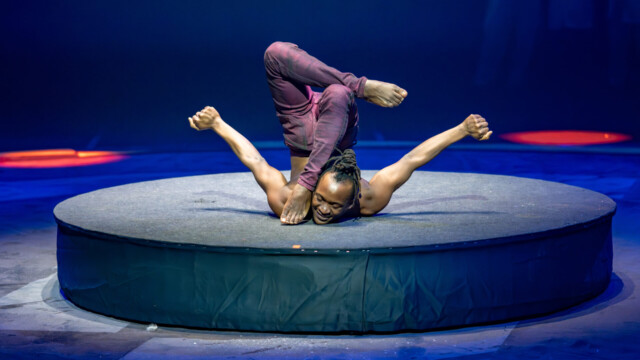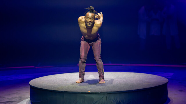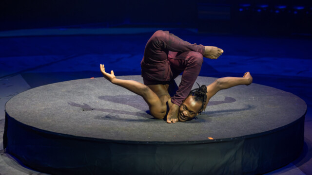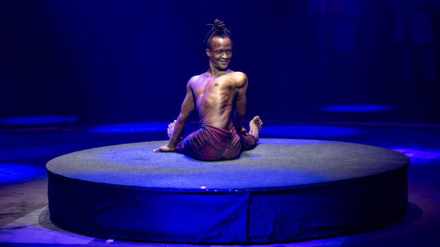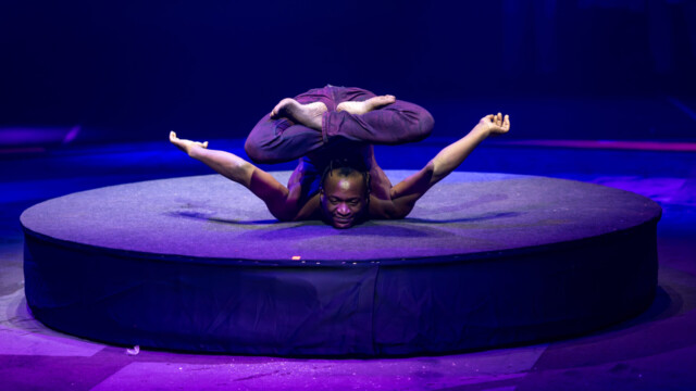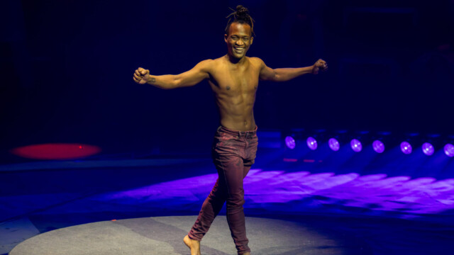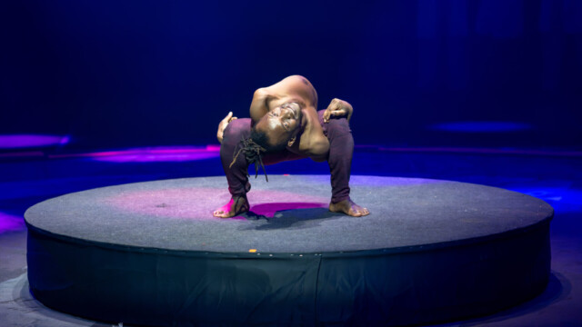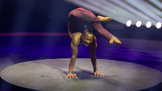 Mit extremer Beweglichkeit arbeitet der Kontorsionsartist Juma. Seine Nummer zeigt ungewöhnliche Körperpositionen und kontrollierte Verformungen, die die körperlichen Möglichkeiten dieser Disziplin deutlich machen, ohne dabei auf theatrale Effekte angewiesen zu sein.