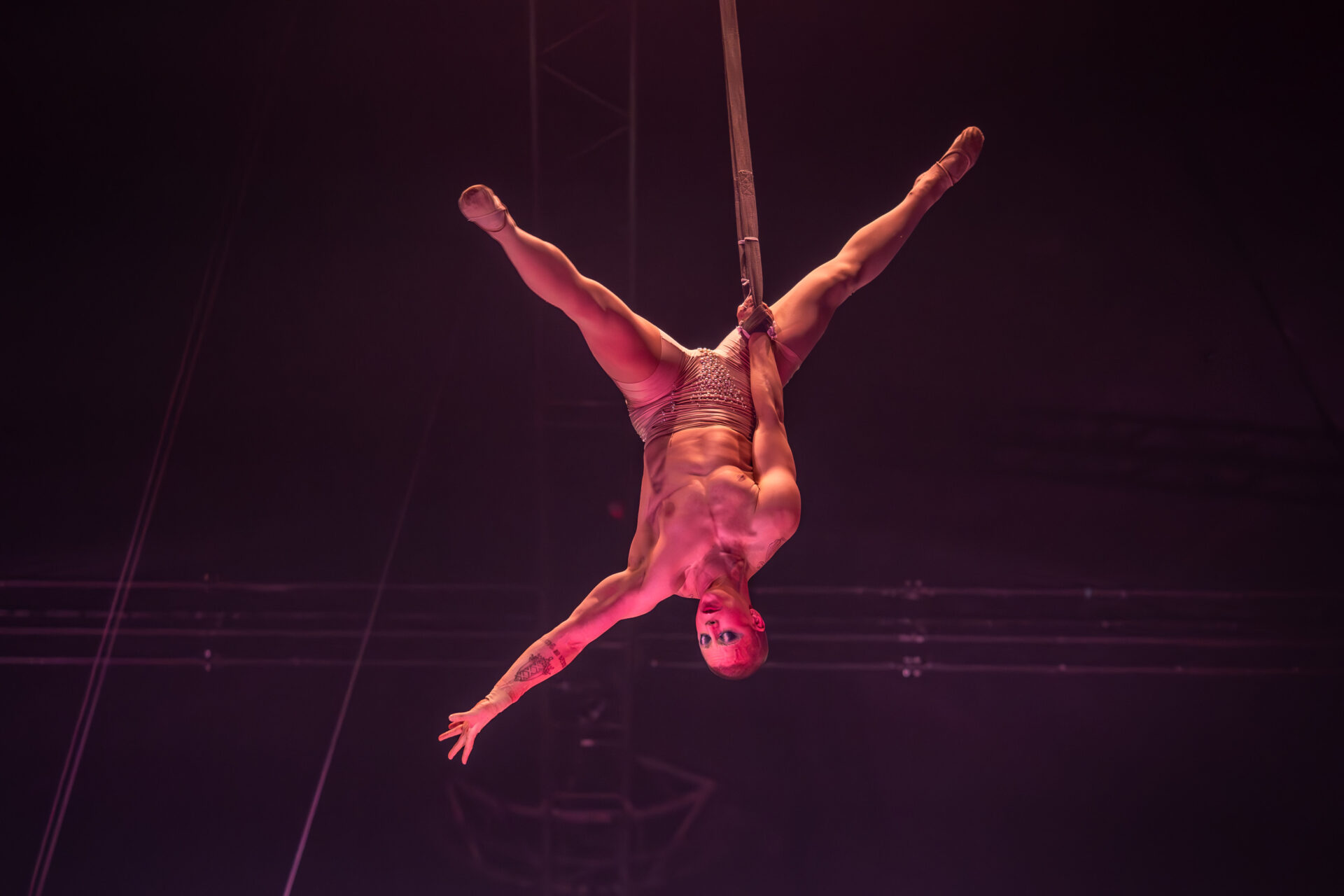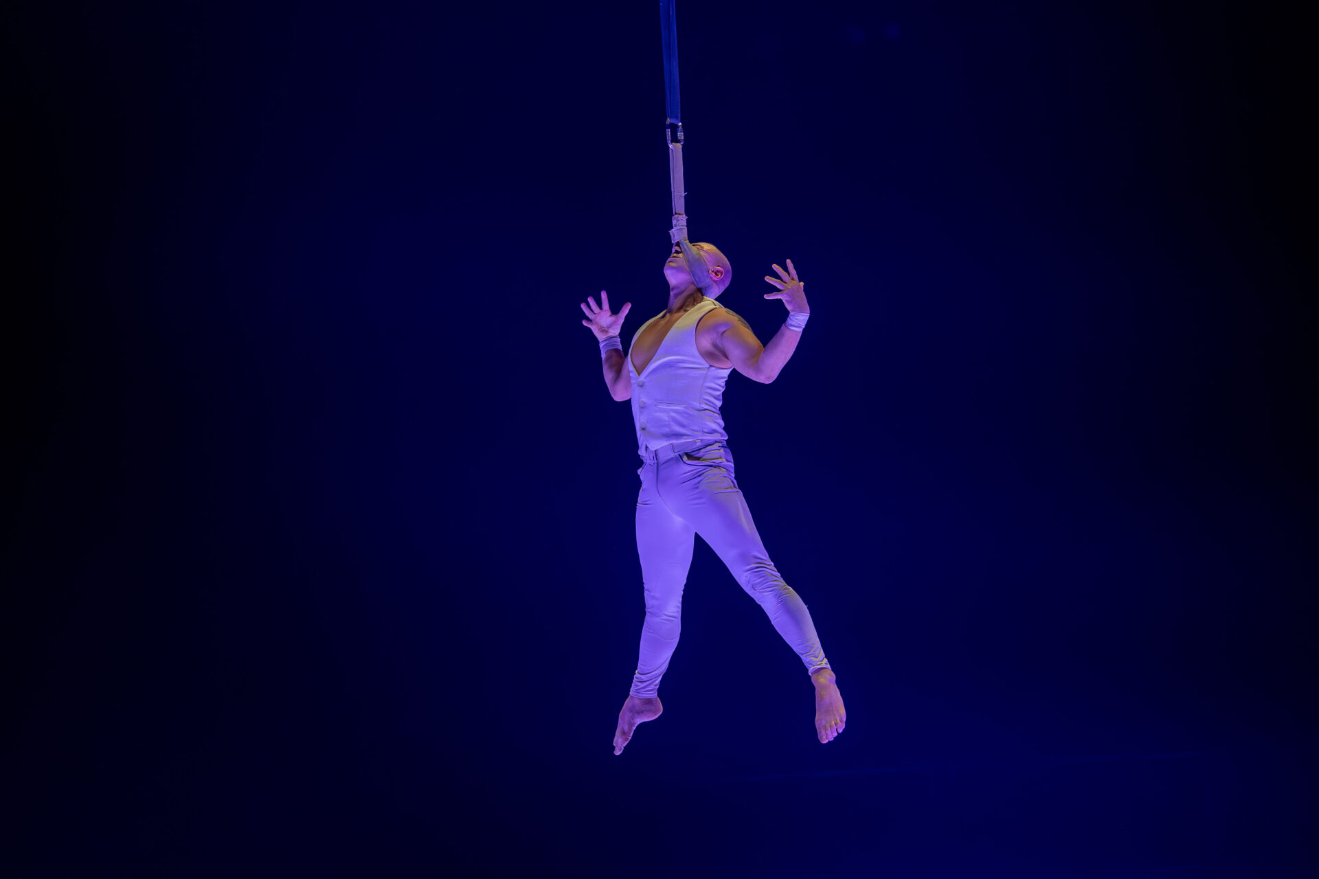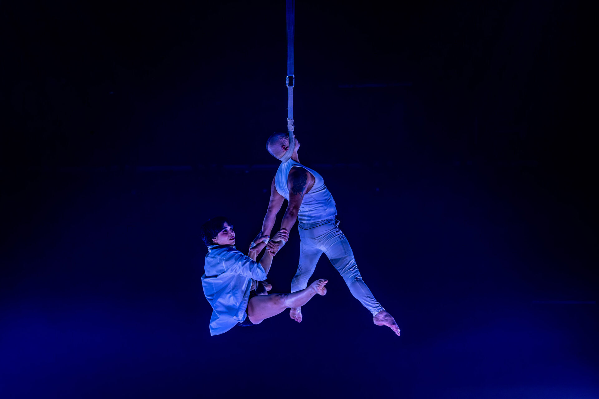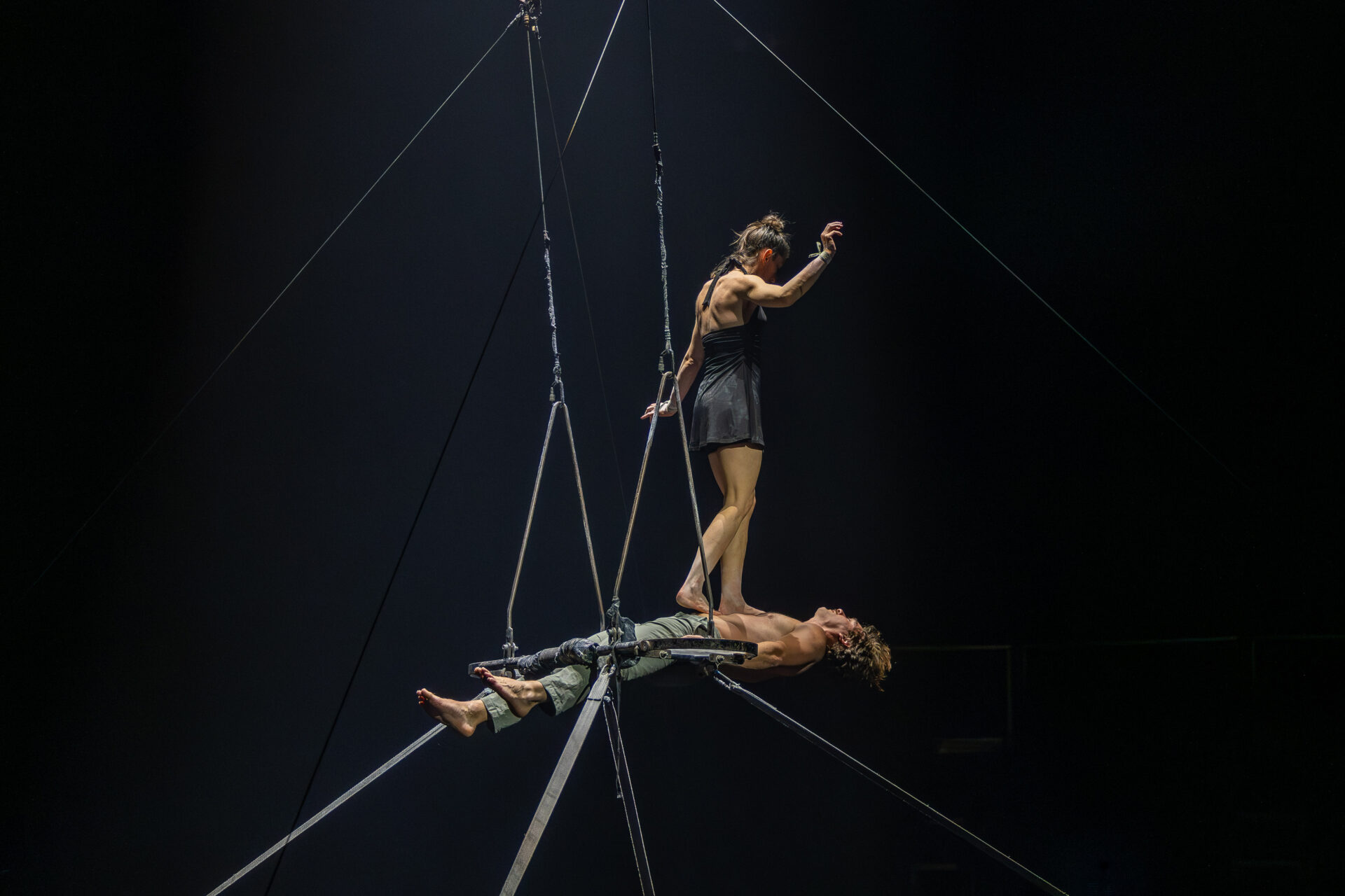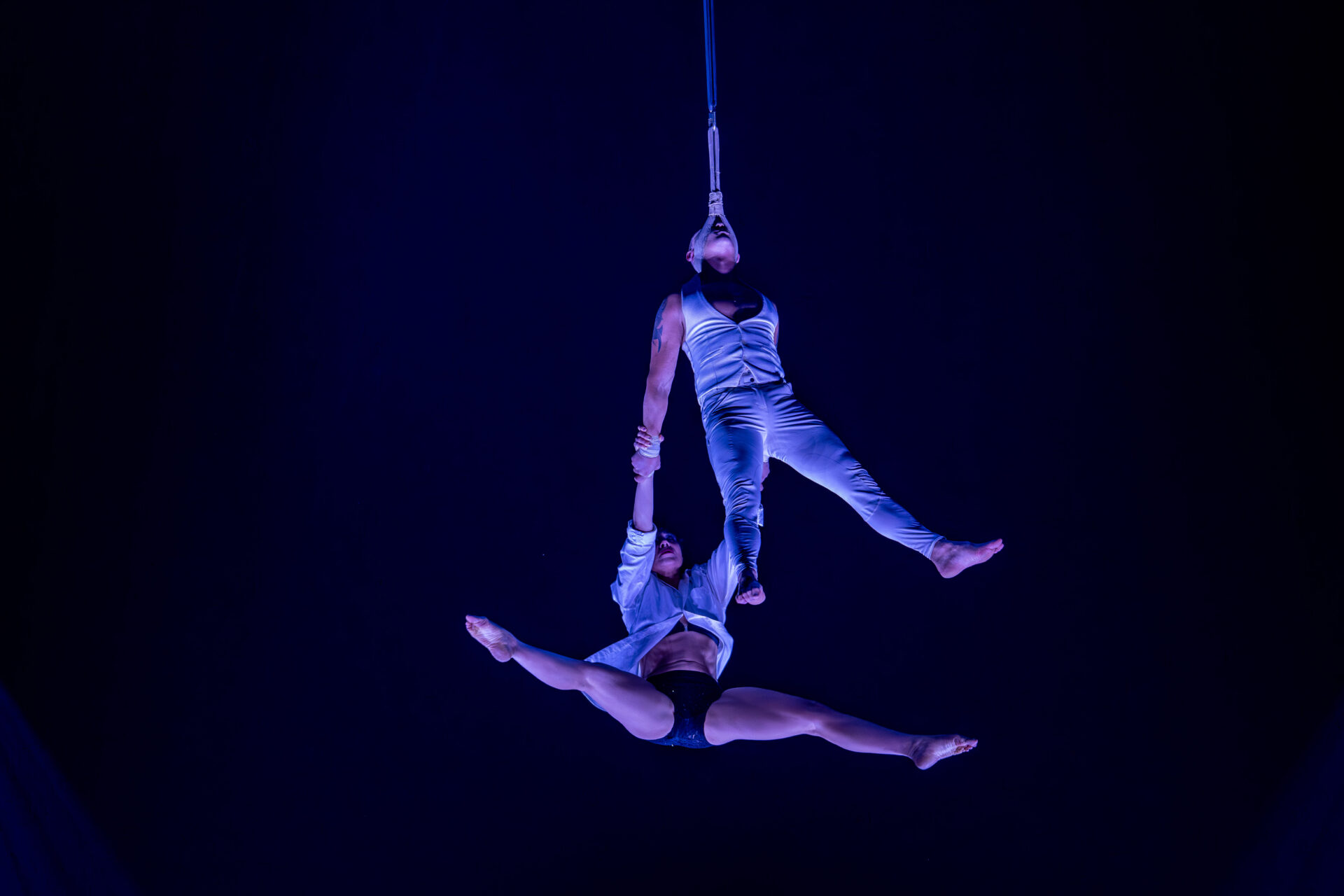 Mit dem Duo Requiem verlagert sich der Fokus auf Kraft, Kontrolle und Körperspannung. In ihrer Strapaten-Nummer setzen die beiden Artisten auf saubere Linien, kontrollierte Übergänge und eine ruhige Dramaturgie. Die reduzierte Inszenierung unterstreicht dabei die technische Qualität der Darbietung.