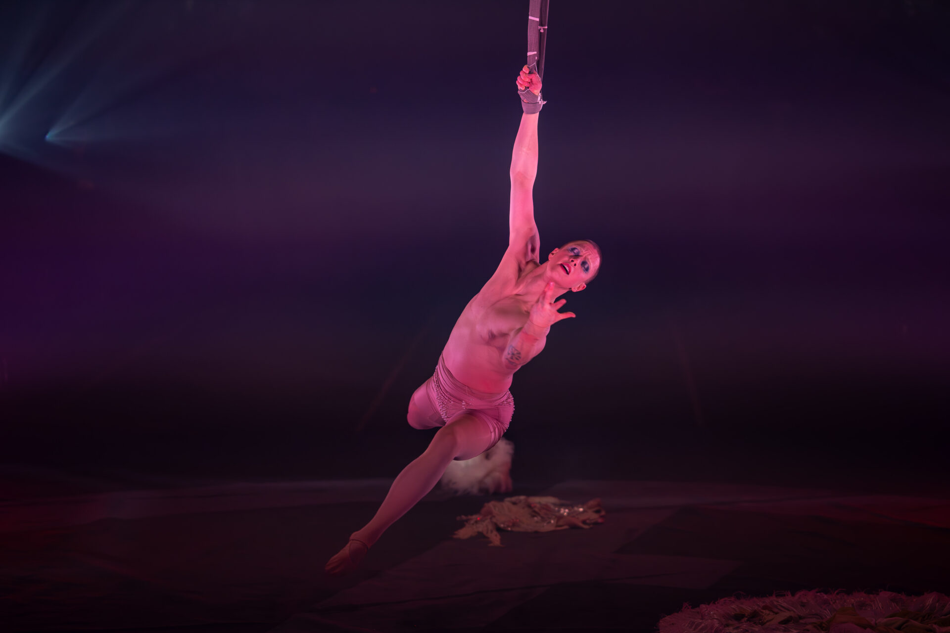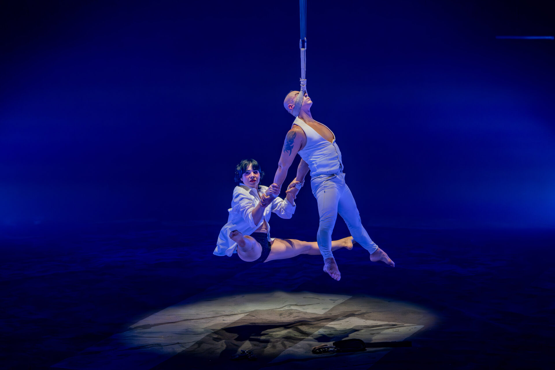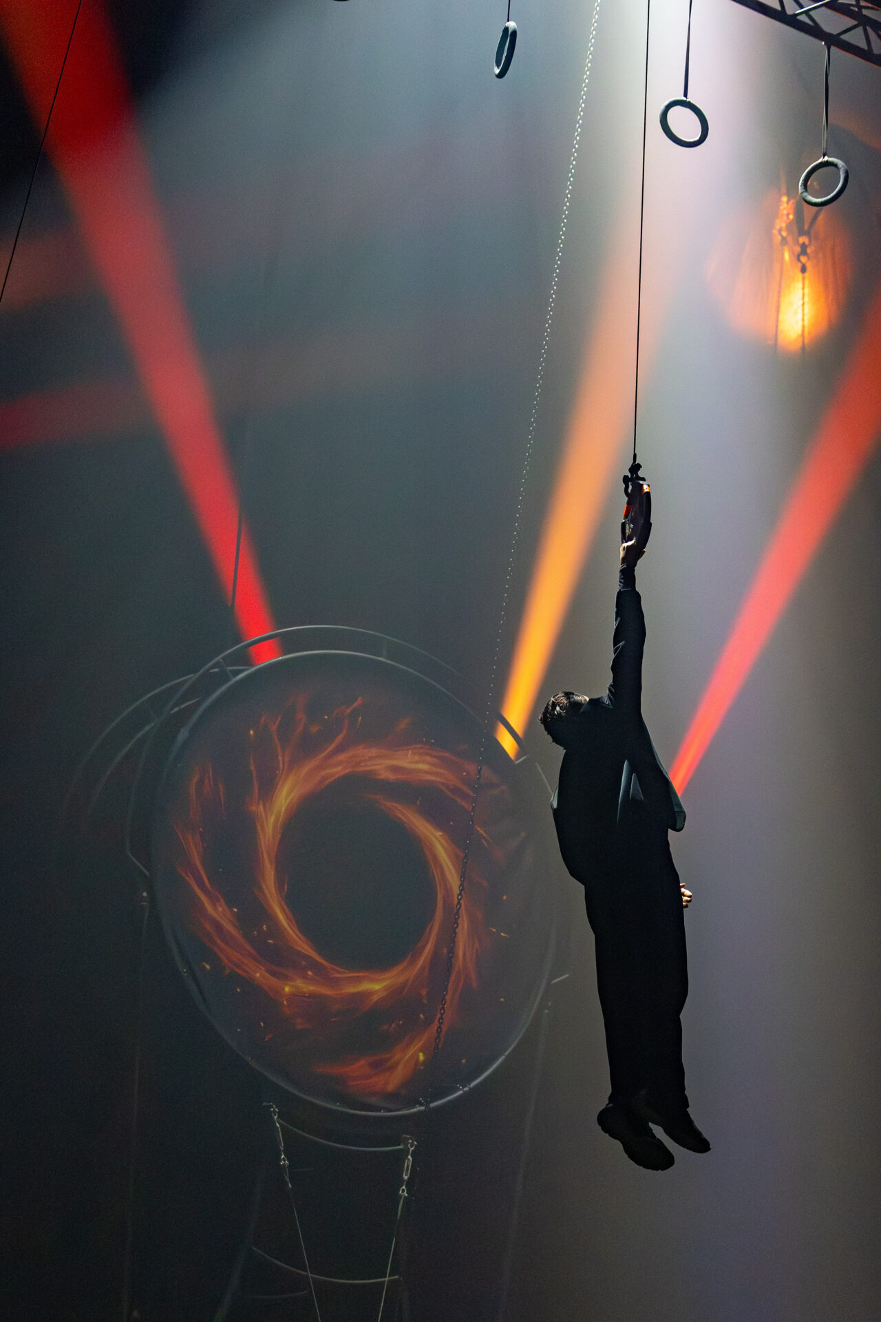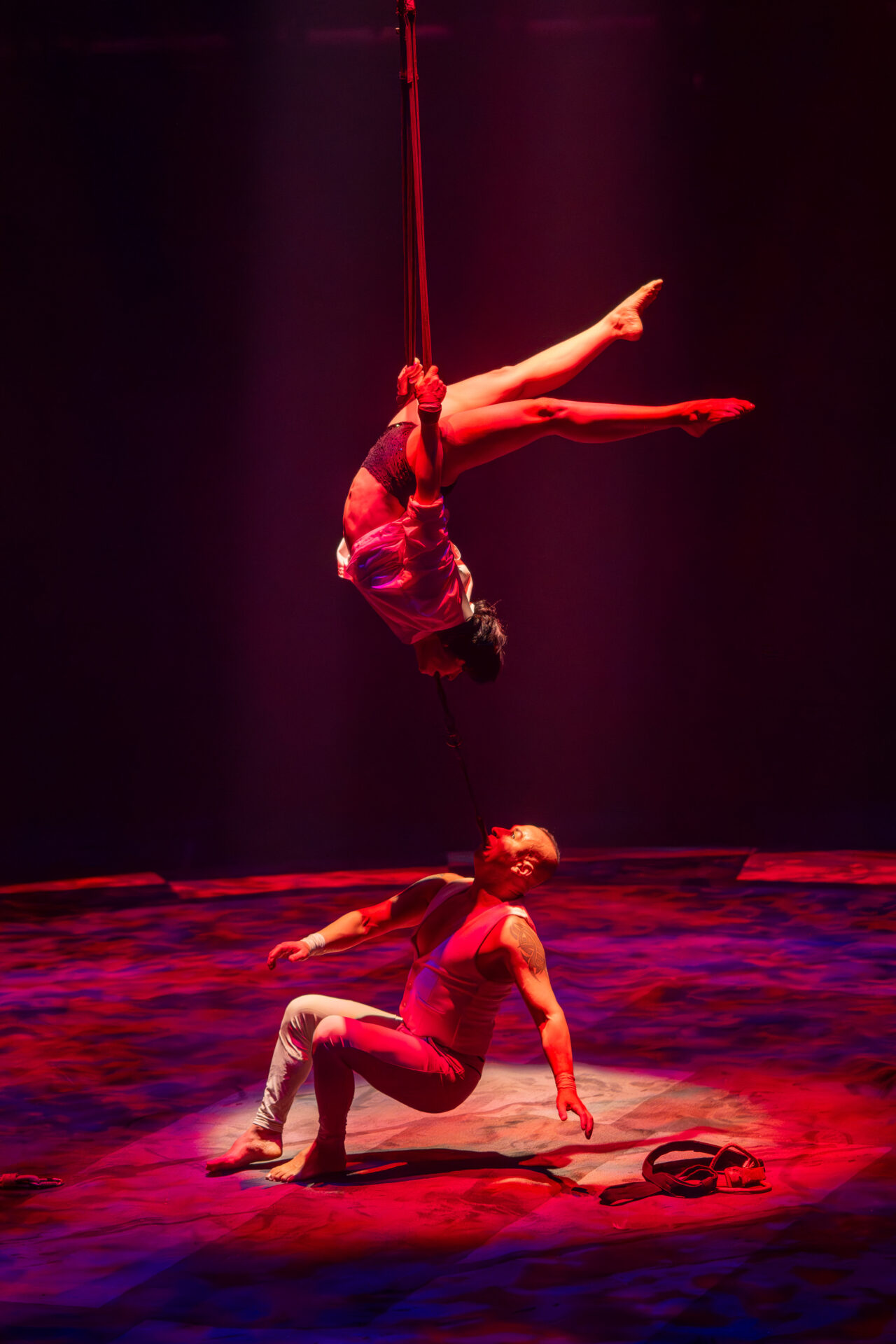 Mit dem Duo Requiem verlagert sich der Fokus auf Kraft, Kontrolle und Körperspannung. In ihrer Strapaten-Nummer setzen die beiden Artisten auf saubere Linien, kontrollierte Übergänge und eine ruhige Dramaturgie. Die reduzierte Inszenierung unterstreicht dabei die technische Qualität der Darbietung.