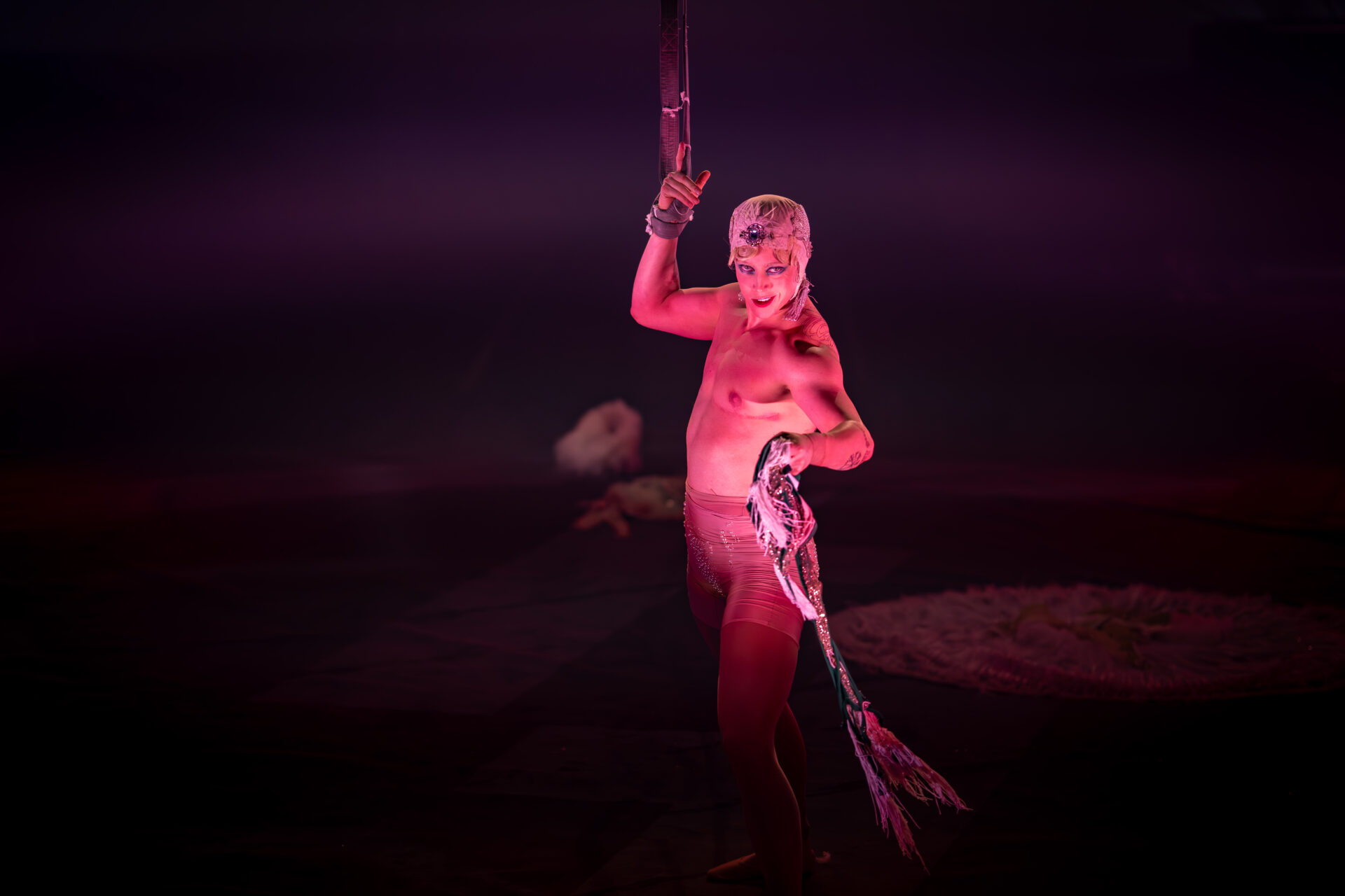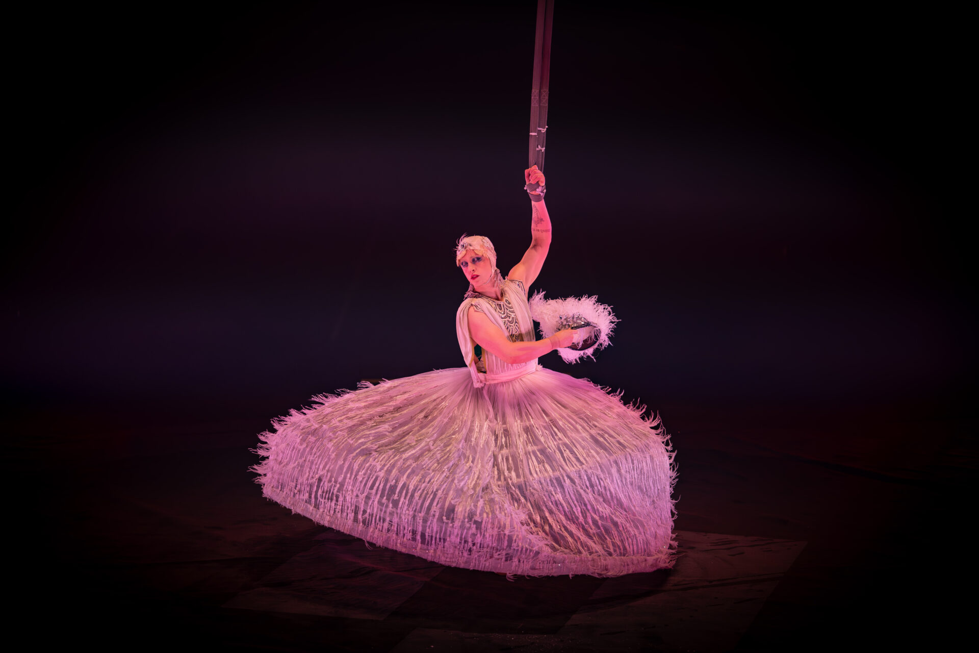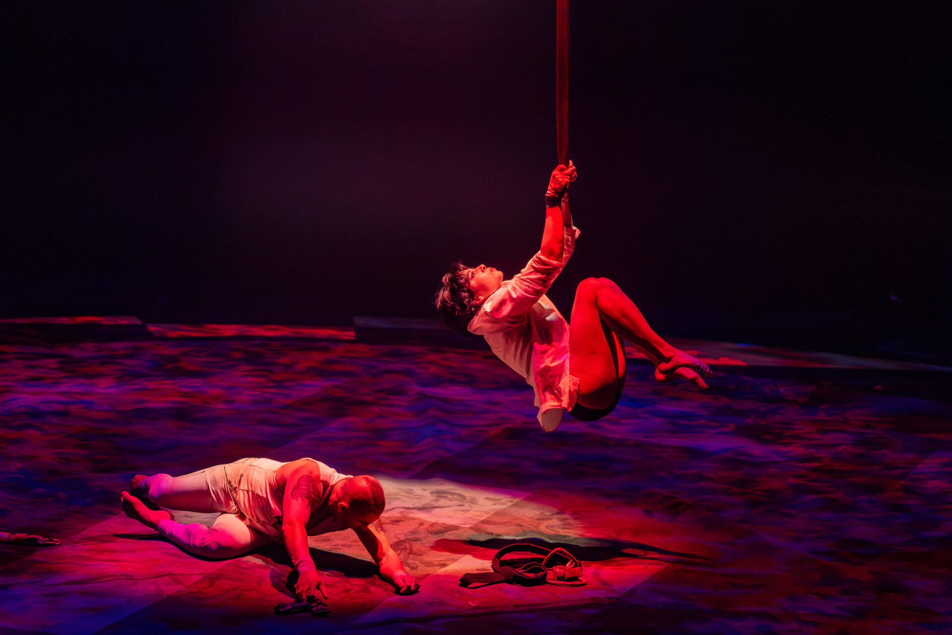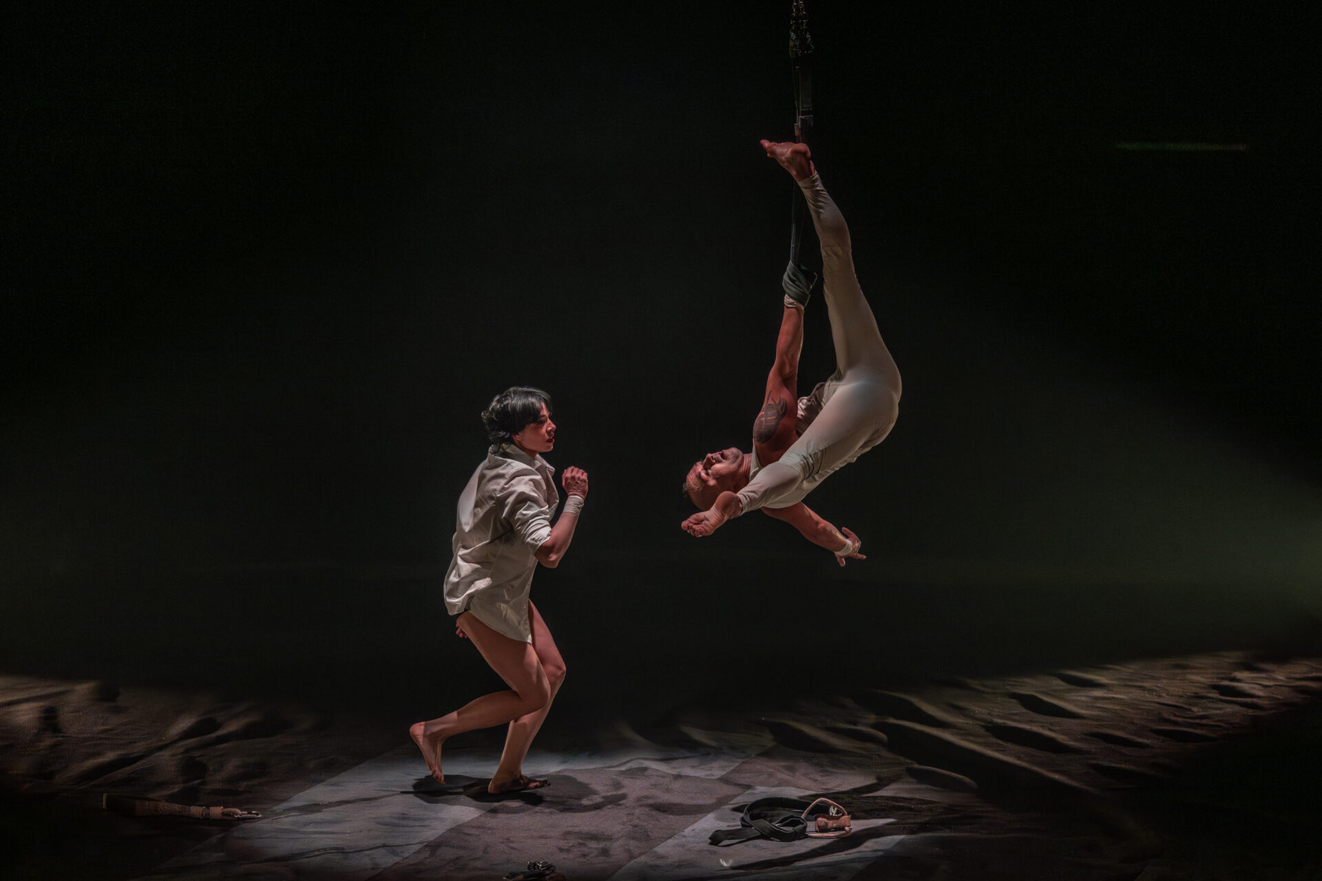 Mit dem Duo Requiem verlagert sich der Fokus auf Kraft, Kontrolle und Körperspannung. In ihrer Strapaten-Nummer setzen die beiden Artisten auf saubere Linien, kontrollierte Übergänge und eine ruhige Dramaturgie. Die reduzierte Inszenierung unterstreicht dabei die technische Qualität der Darbietung.