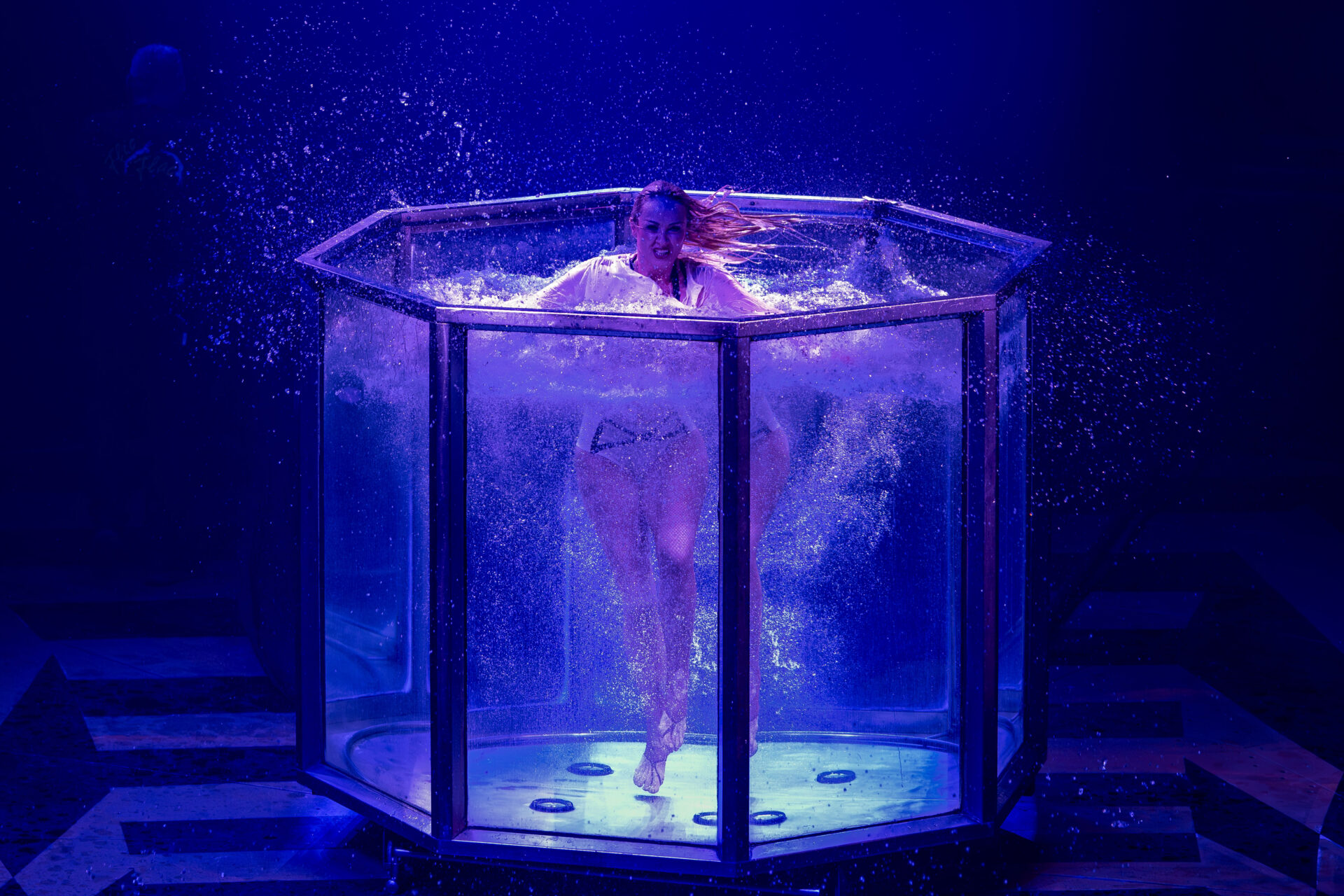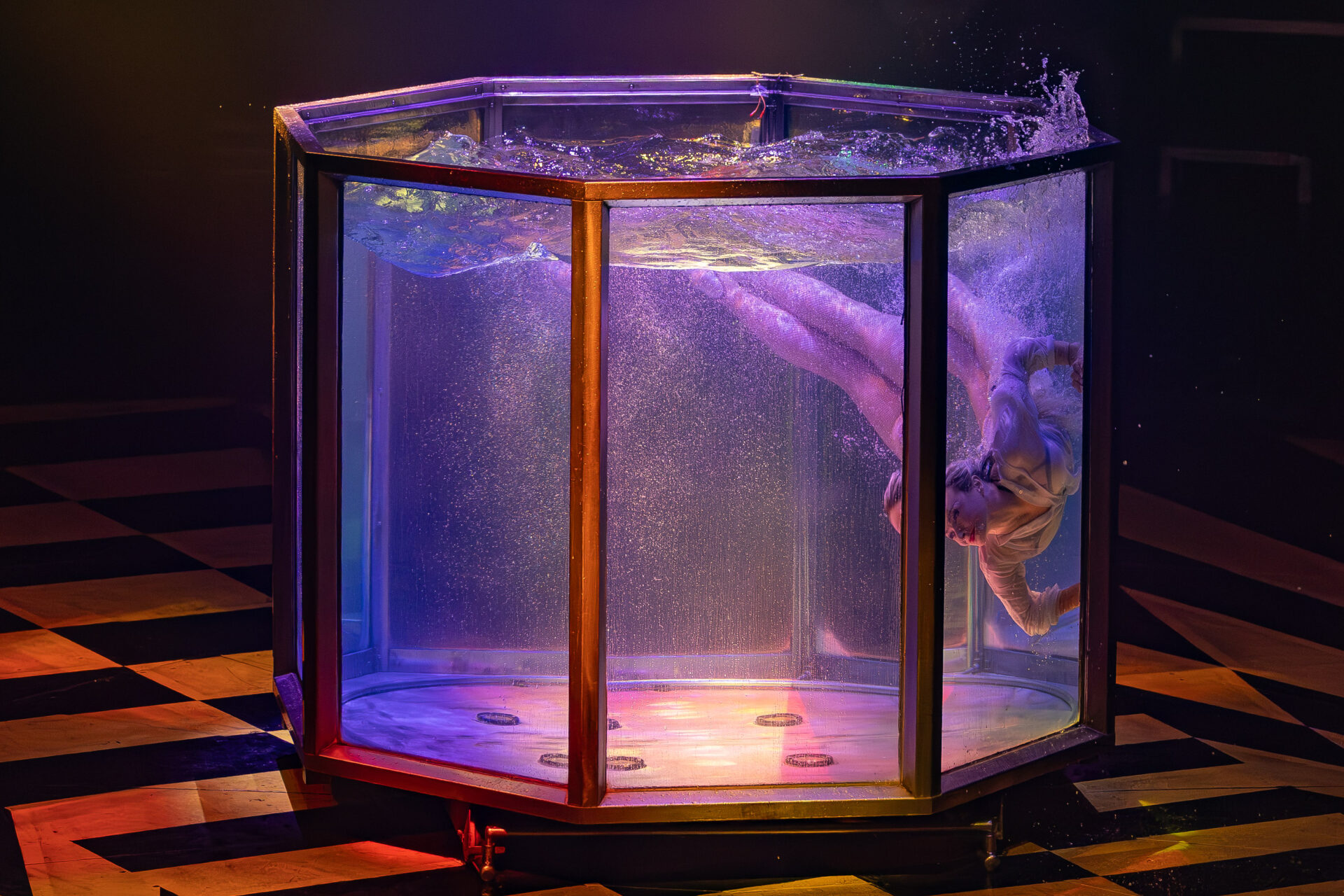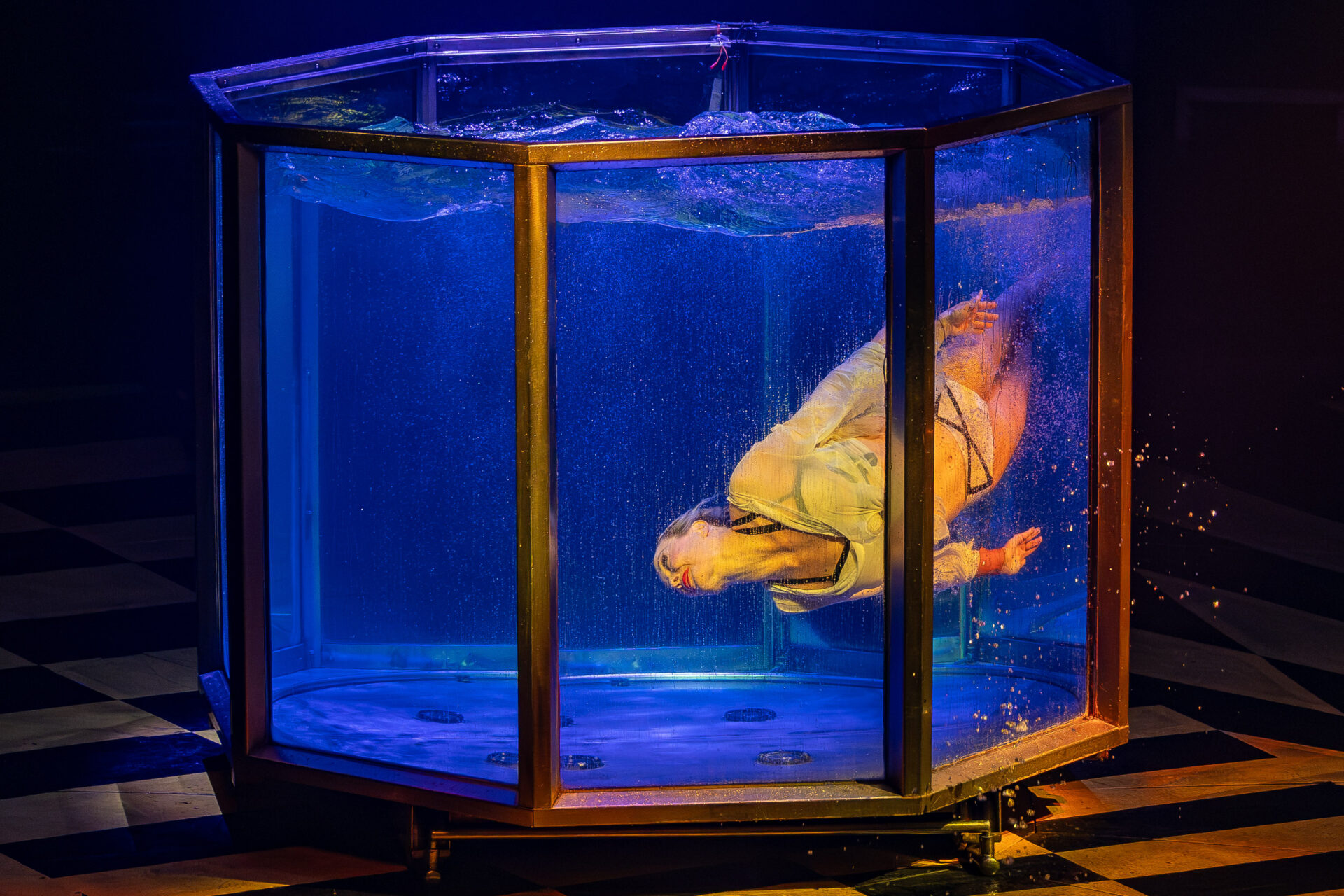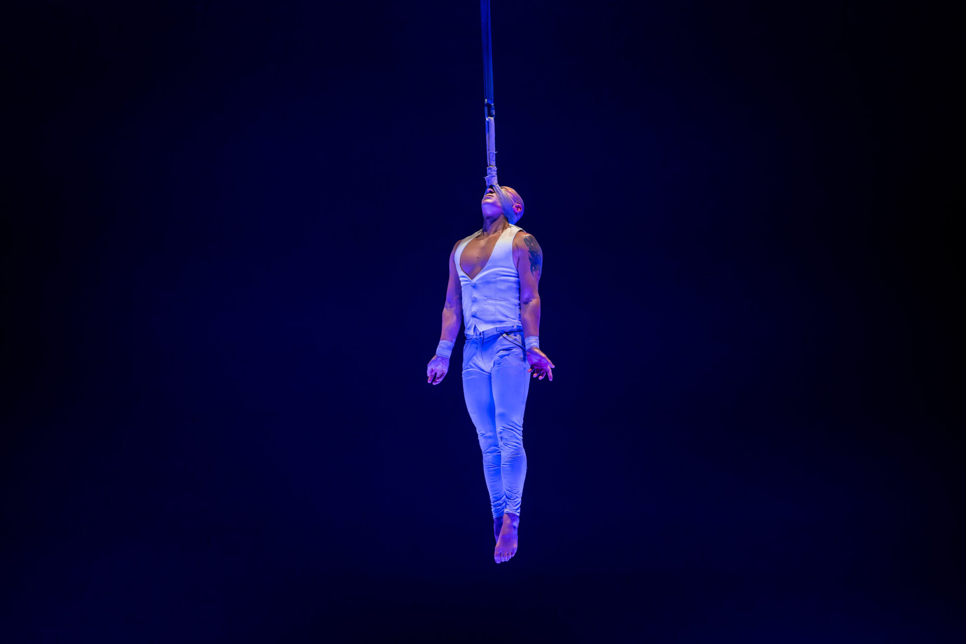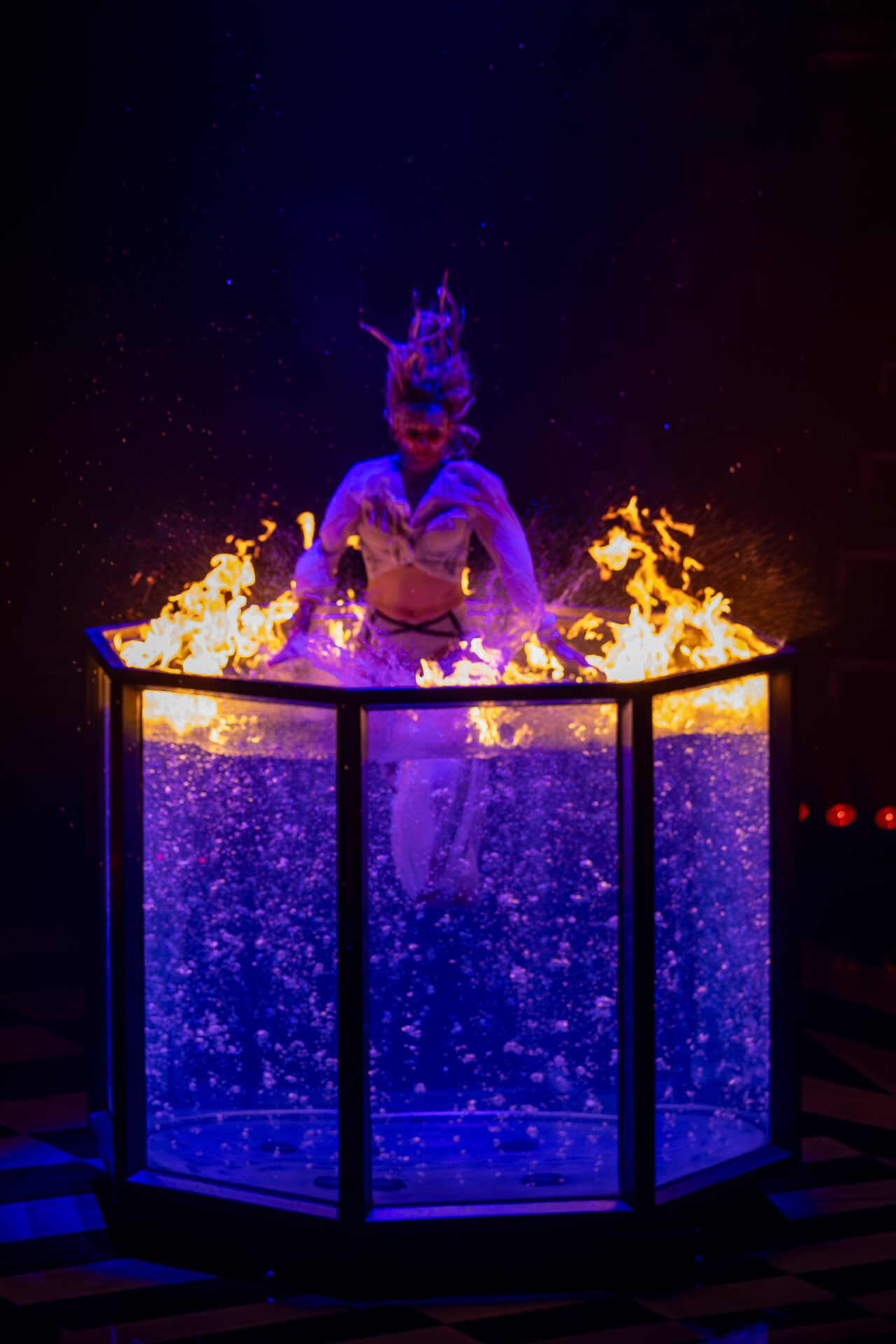 Einen atmosphärischen Akzent setzt Laura Miller. Wenn sie aus dem gläsernen Bassin mit ihrem Luftring in die Höhe schießt, entsteht ein kraftvolles Zusammenspiel aus Licht, Höhe und Bewegung. Die Nummer bleibt durchgehend dynamisch, steigert kontinuierlich Spannung und Tempo und fügt sich nahtlos in das Gesamtbild der Show ein.