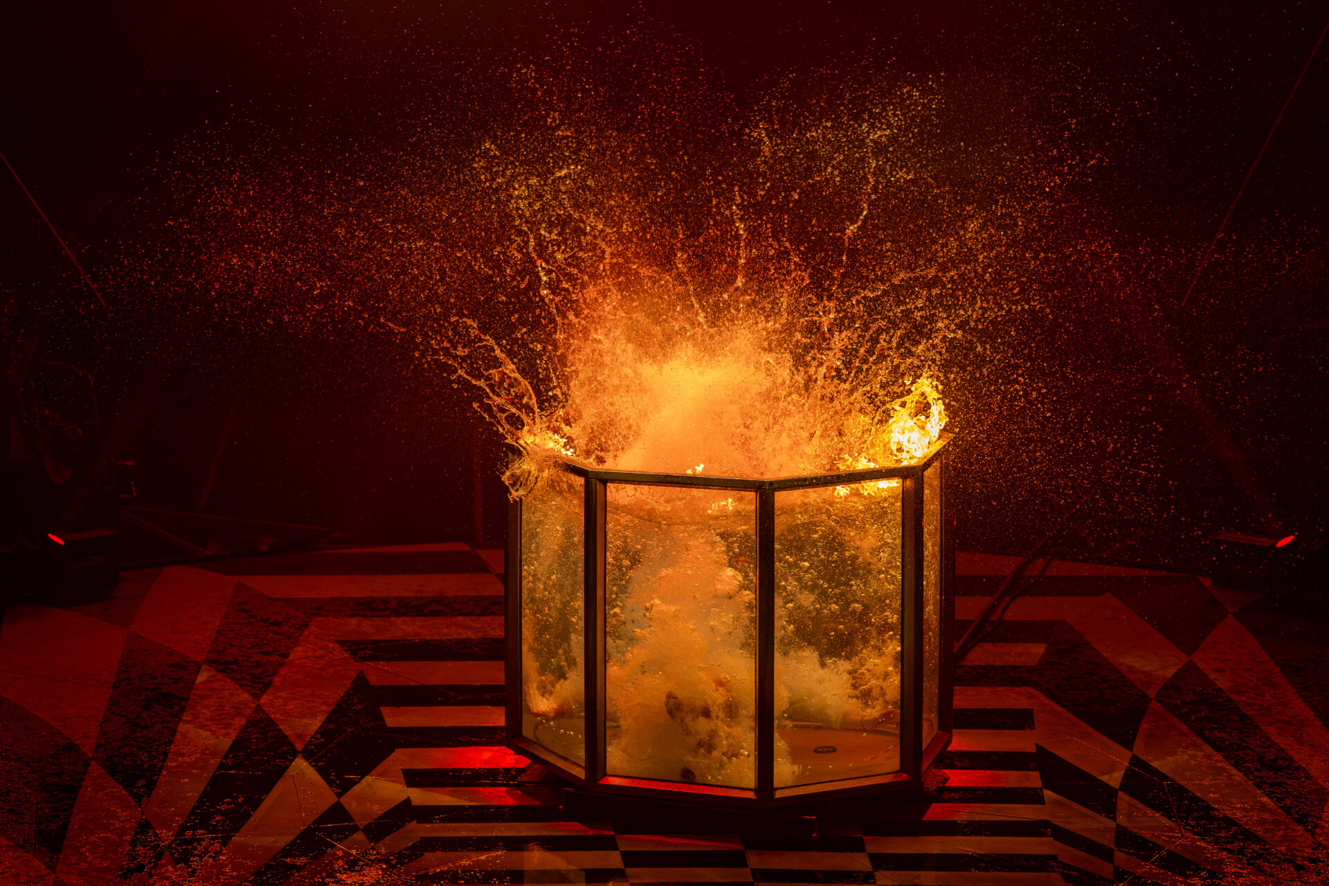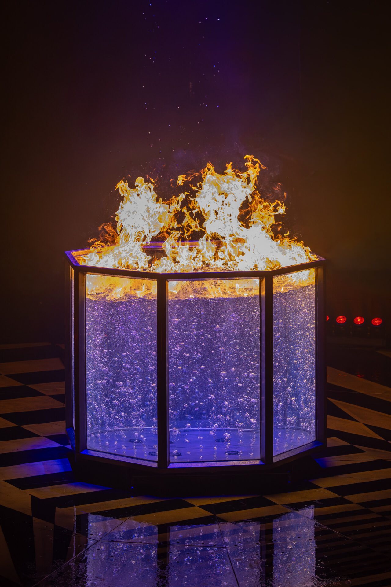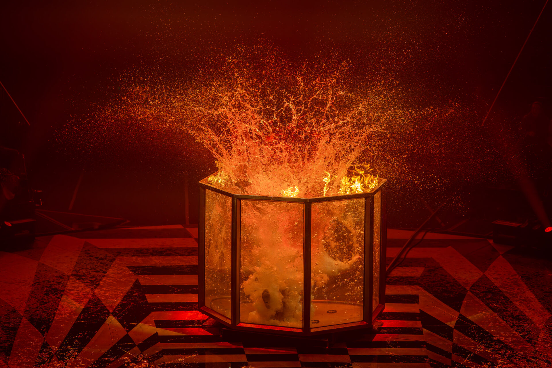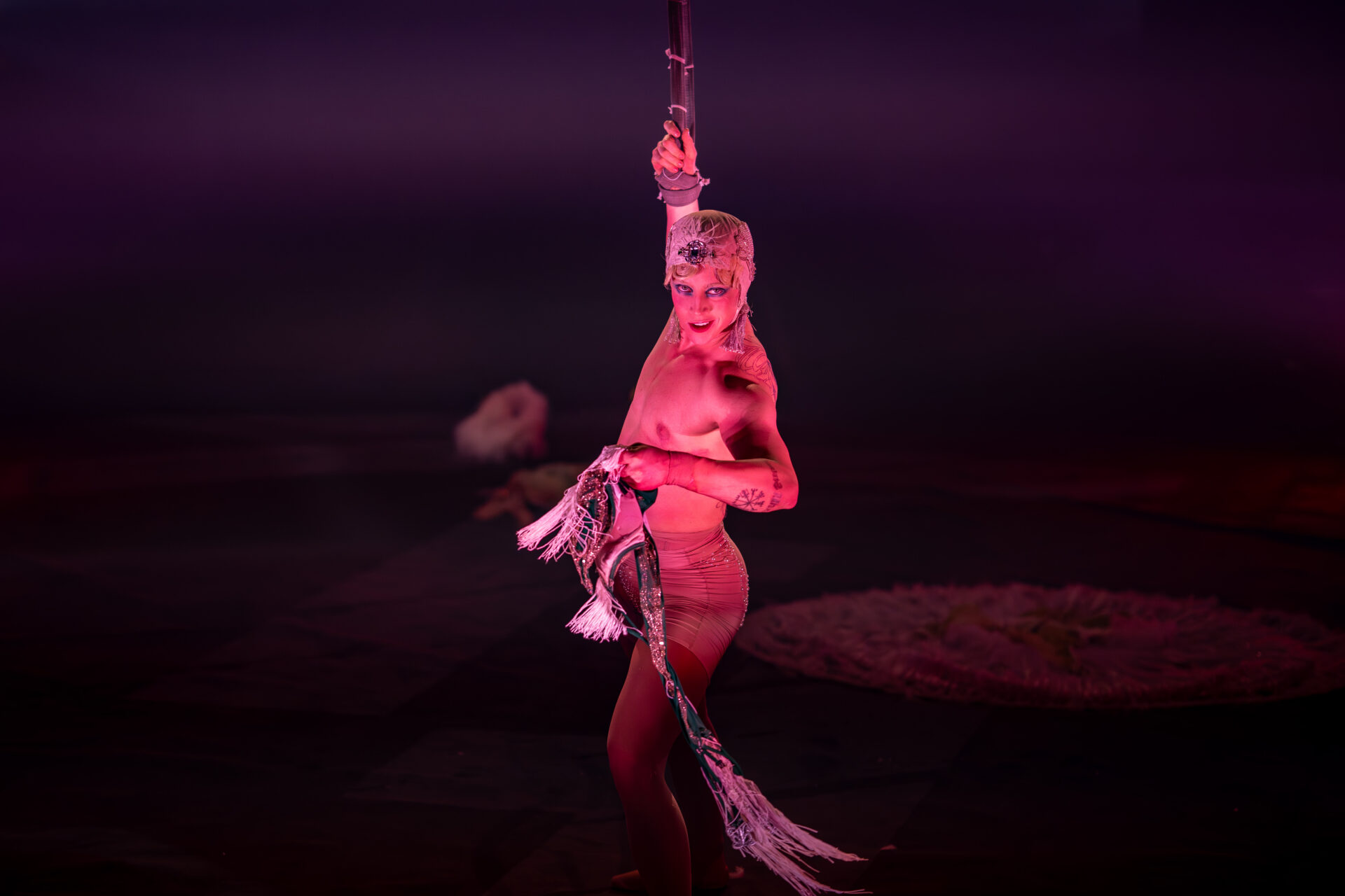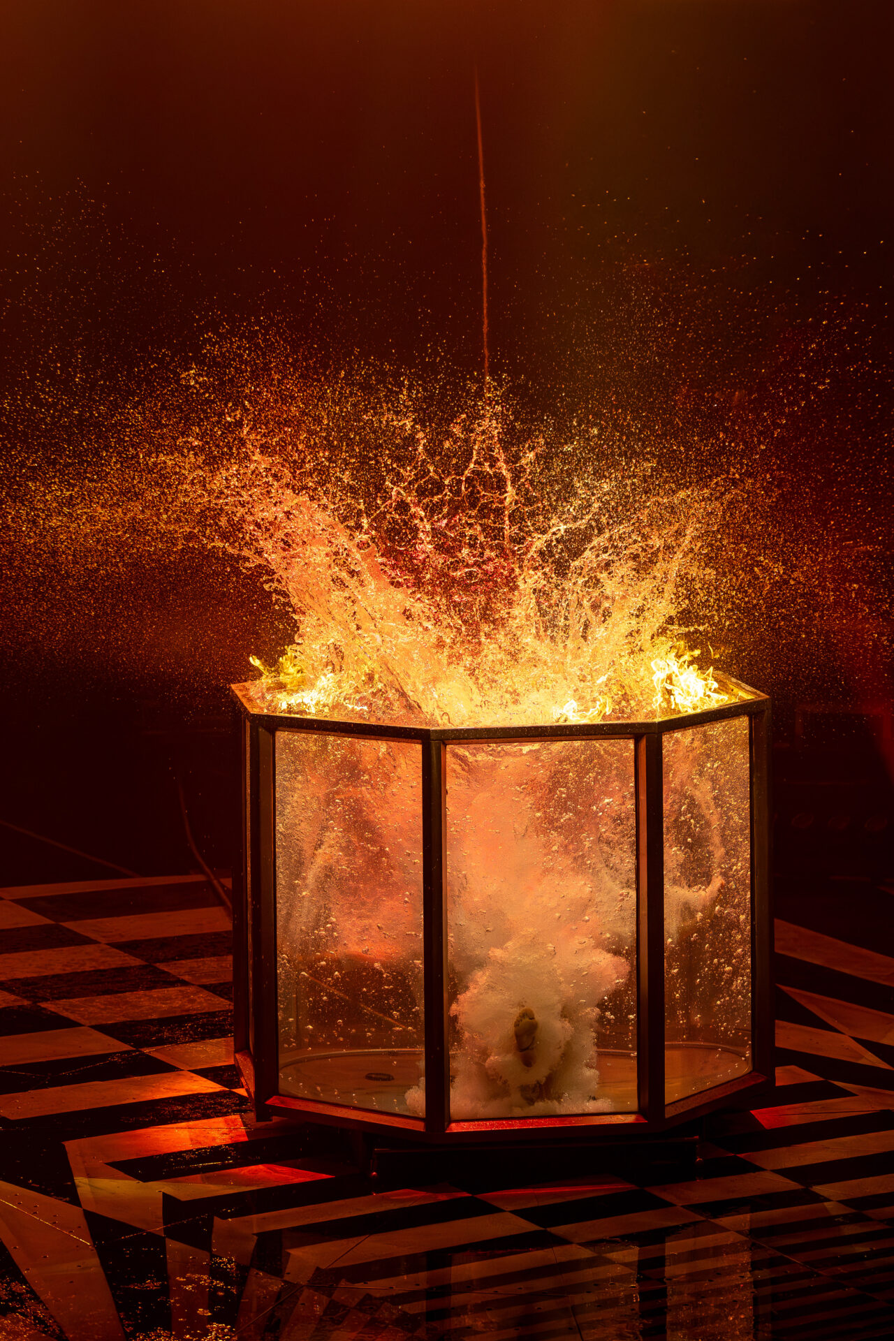 Einen atmosphärischen Akzent setzt Laura Miller. Wenn sie aus dem gläsernen Bassin mit ihrem Luftring in die Höhe schießt, entsteht ein kraftvolles Zusammenspiel aus Licht, Höhe und Bewegung. Die Nummer bleibt durchgehend dynamisch, steigert kontinuierlich Spannung und Tempo und fügt sich nahtlos in das Gesamtbild der Show ein.