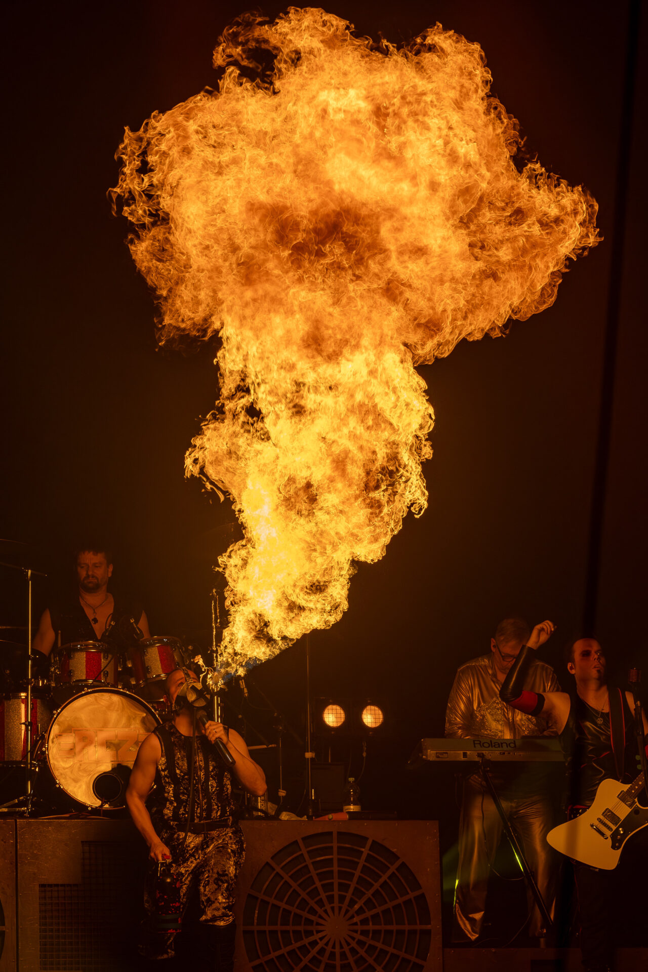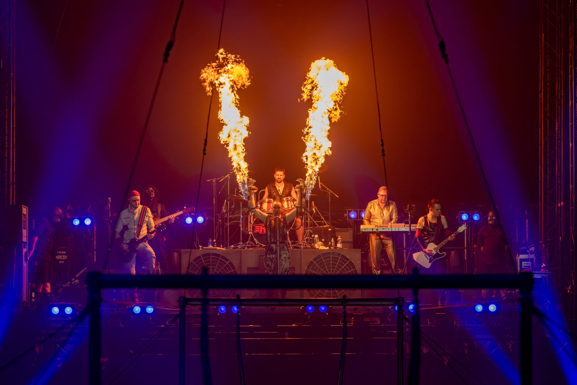 Für den brachialen Sound sorgt die RCZ – Rammstein Symphonic Tribute. Die Band spielt live, laut, präzise und mit genau der Wucht, die perfekt zu Flic Flac passt. Die Kombination aus druckvoller Musik, Feuershow und Artistik sorgt dafür, dass die Manege regelrecht vibriert – Gänsehaut inklusive.