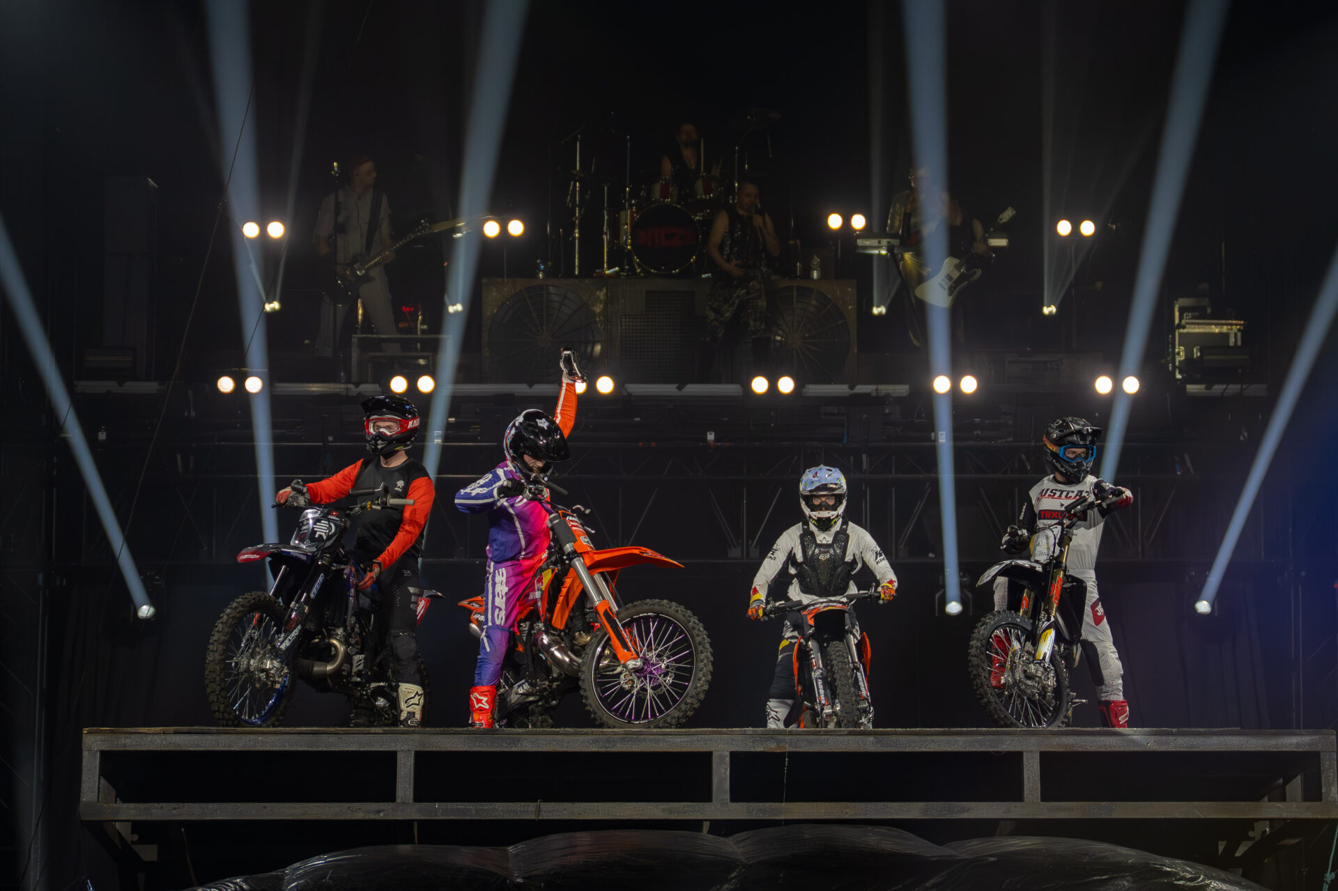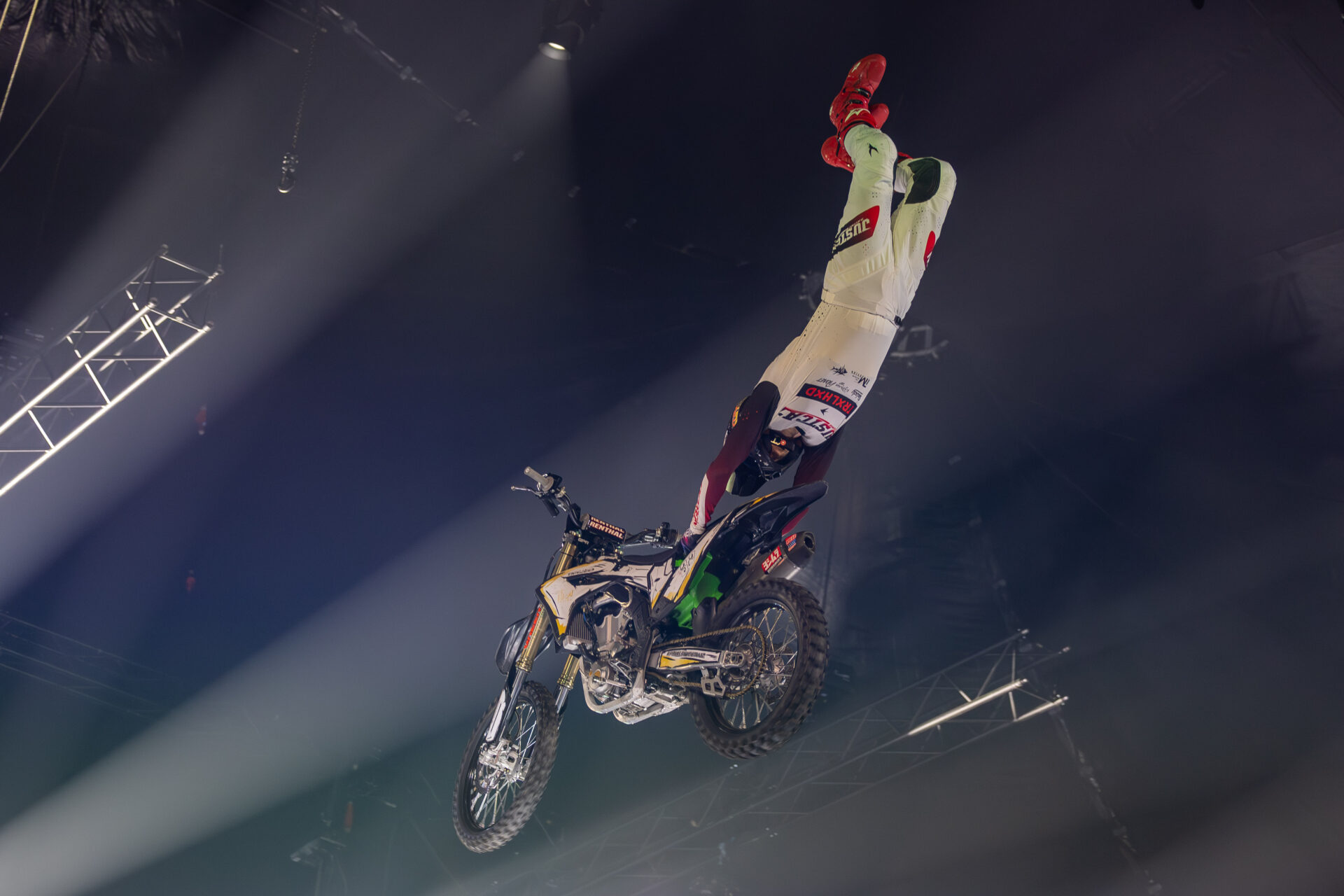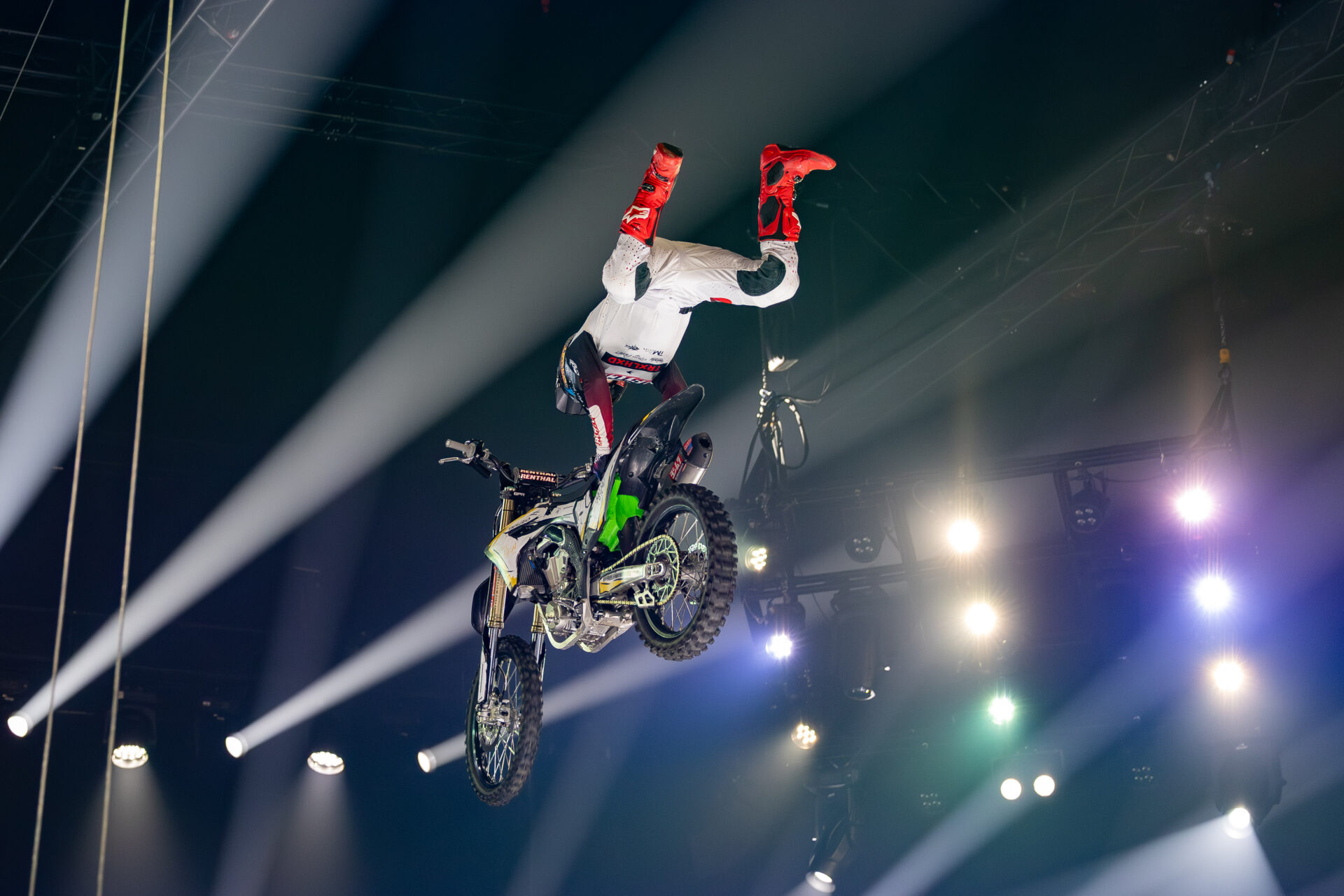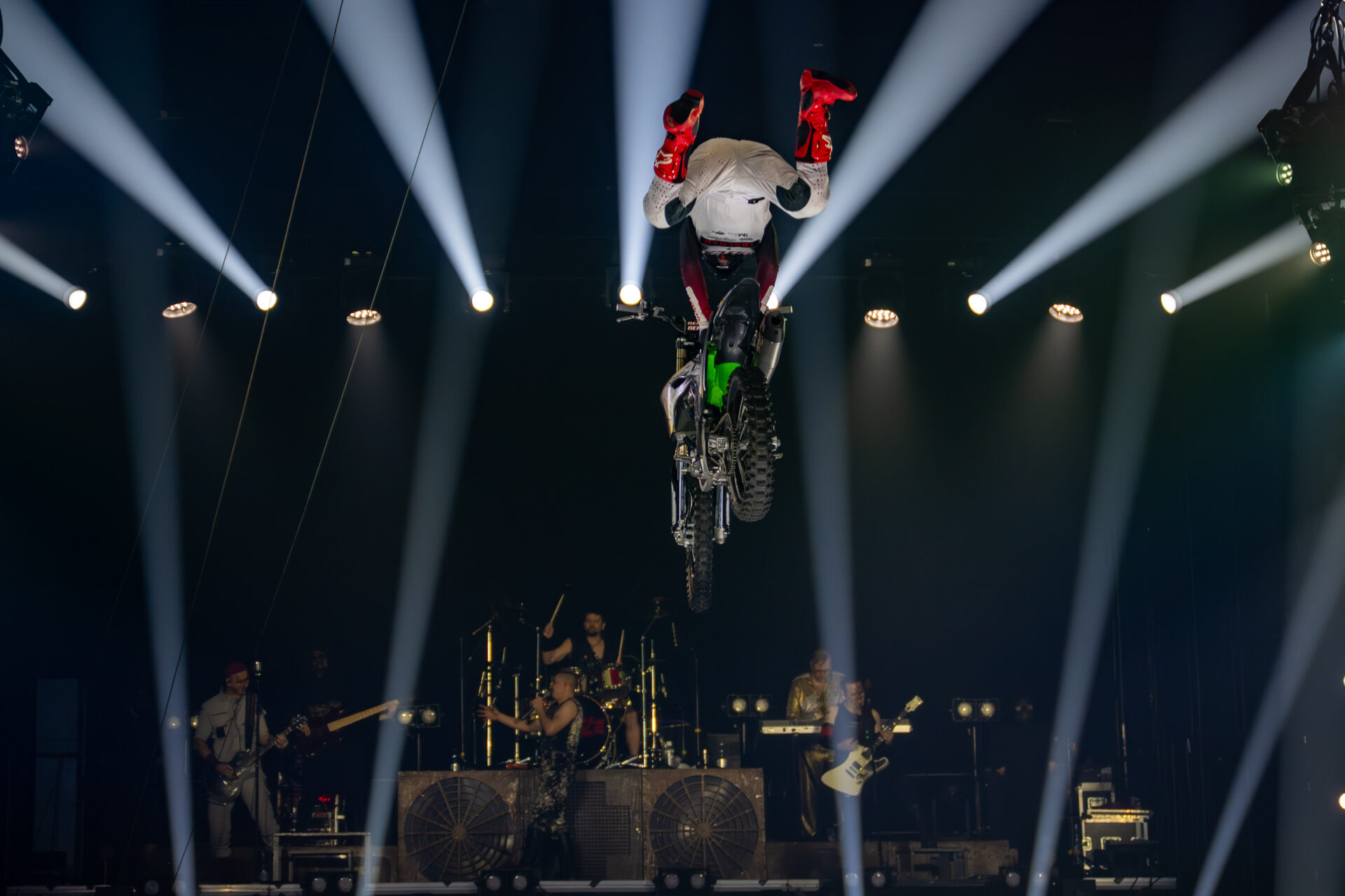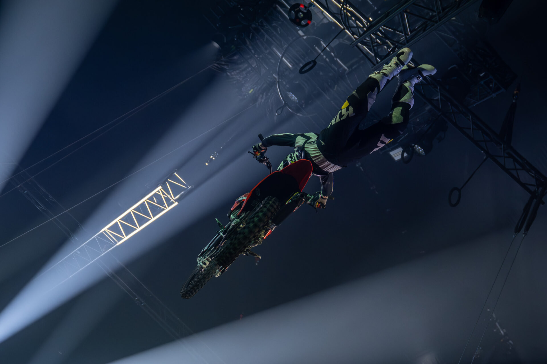 Für einen der lautesten und publikumswirksamsten Momente sorgen die Mad Flying Bikes. Mit ihren Motorrädern nutzen sie den Raum der Manege bis unter die Zeltkuppel aus und liefern eine Abfolge kraftvoller Sprünge, die das klassische Flic-Flac-Prinzip von Risiko und Dynamik konsequent fortführen.