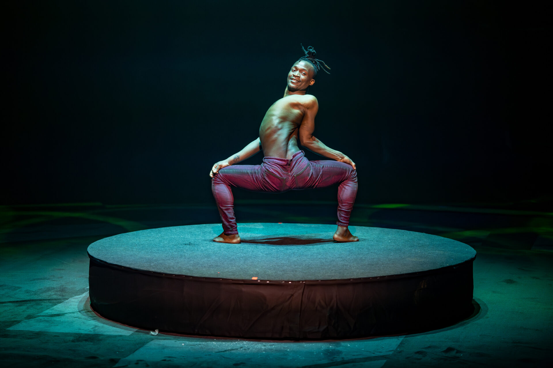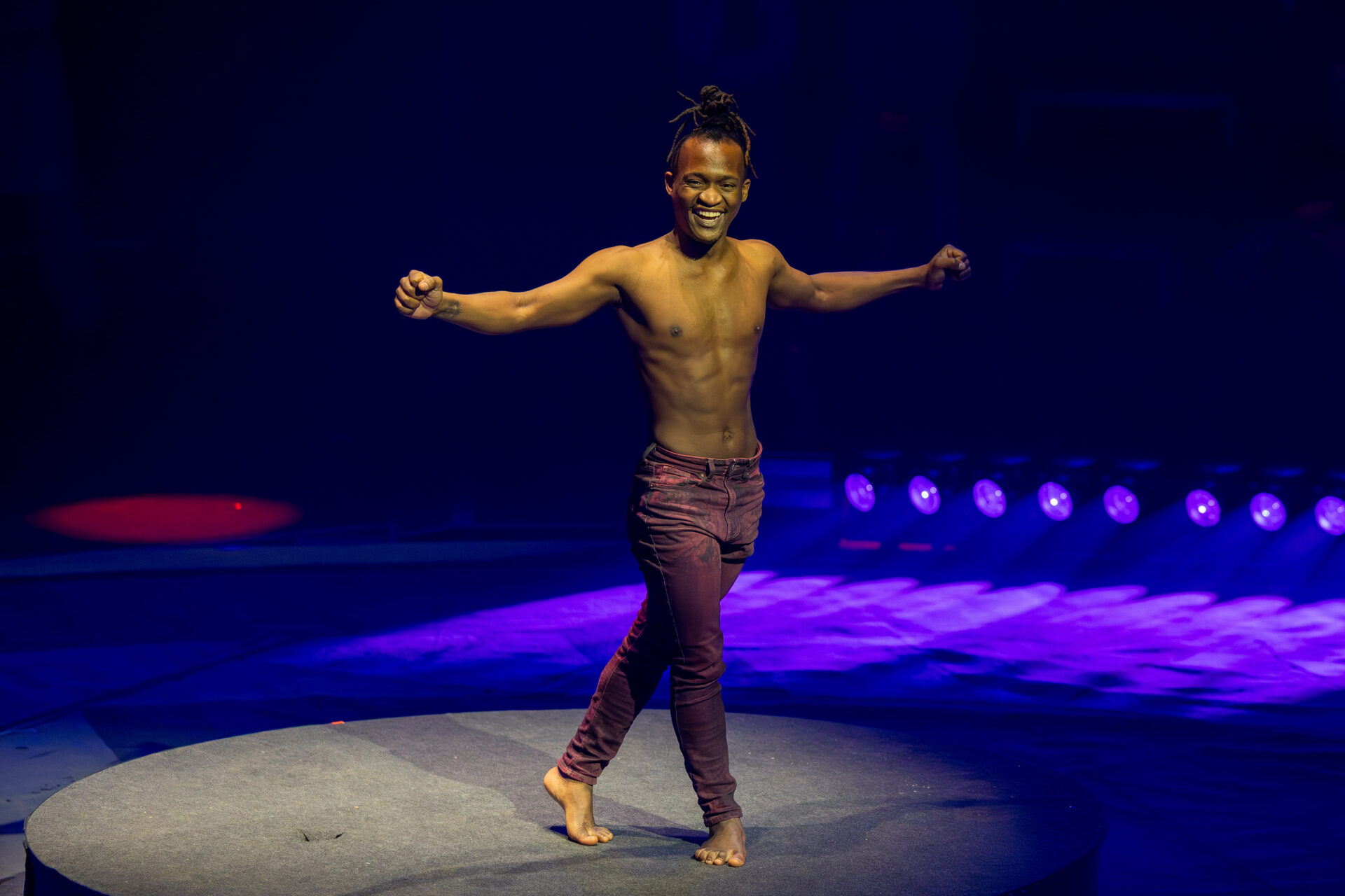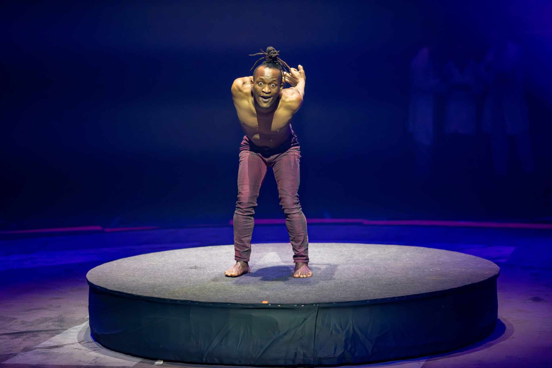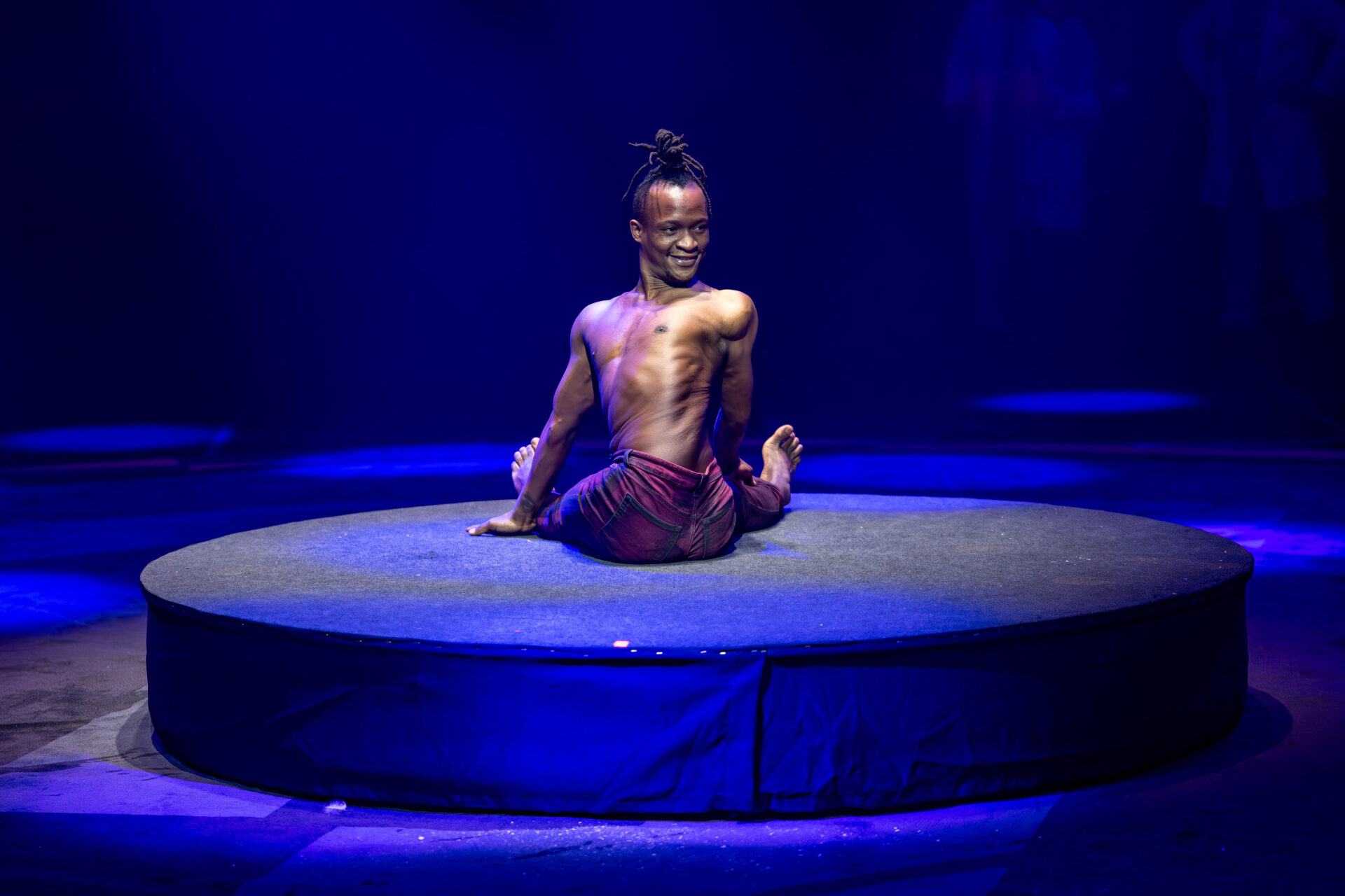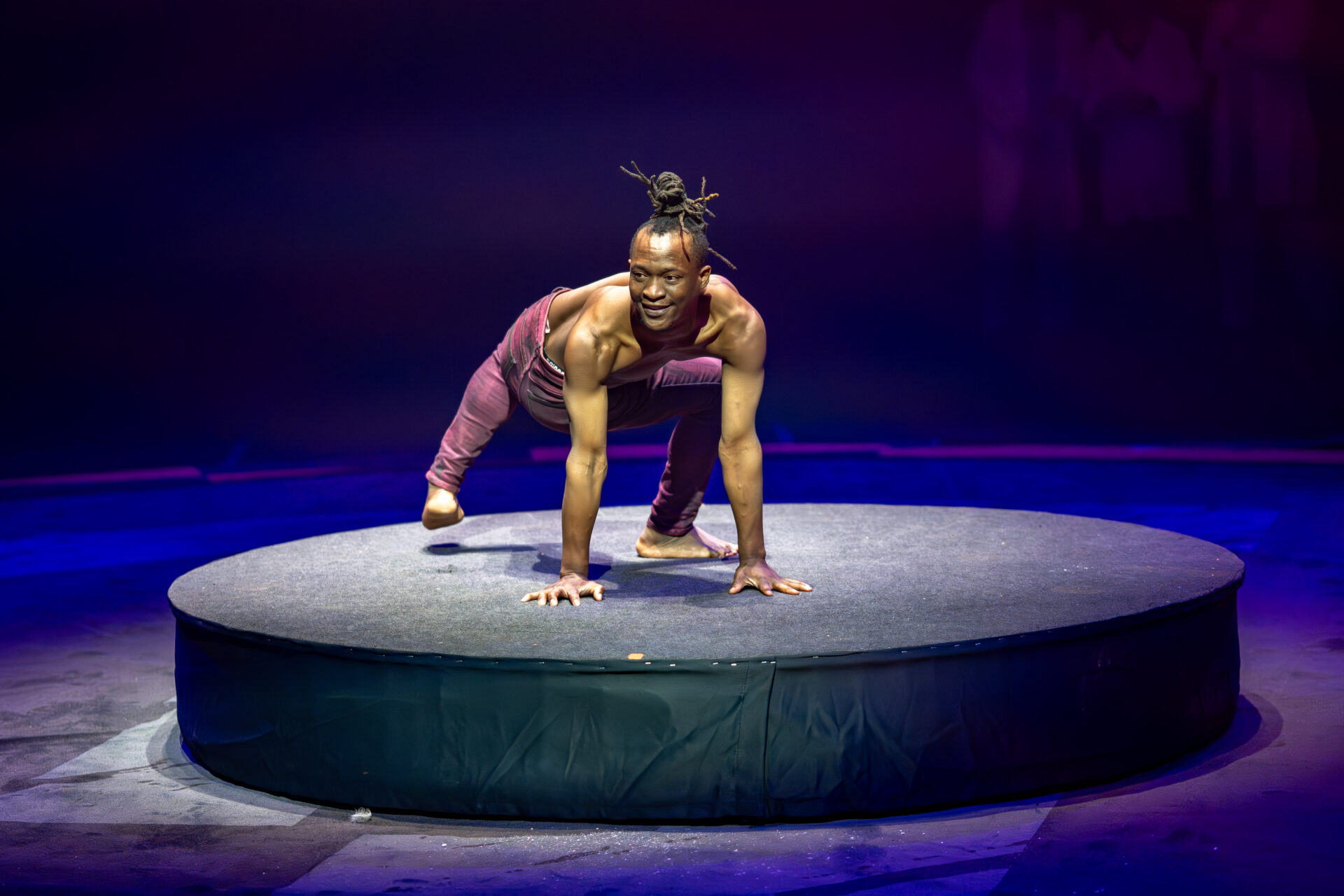 Mit extremer Beweglichkeit arbeitet der Kontorsionsartist Juma. Seine Nummer zeigt ungewöhnliche Körperpositionen und kontrollierte Verformungen, die die körperlichen Möglichkeiten dieser Disziplin deutlich machen, ohne dabei auf theatrale Effekte angewiesen zu sein.