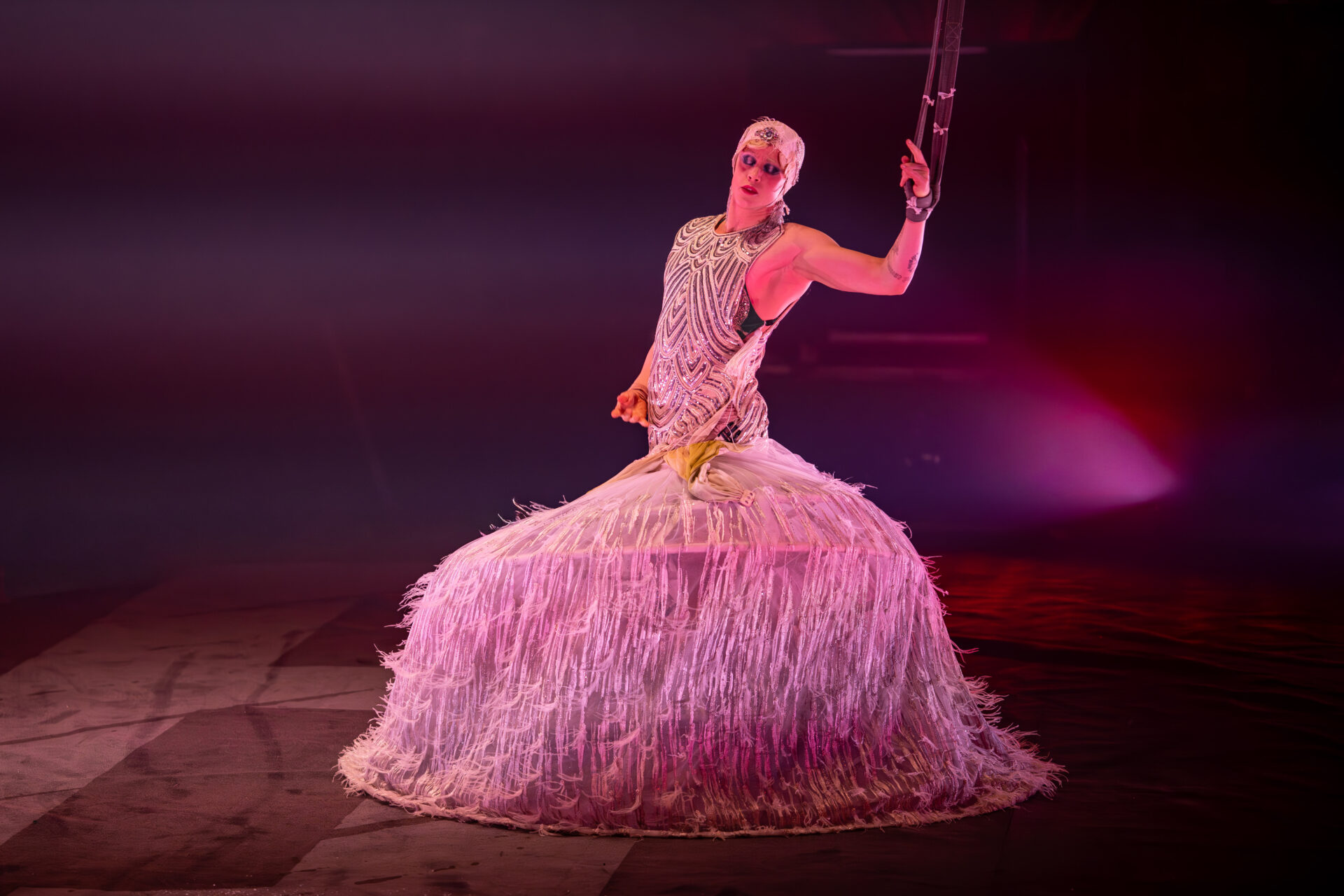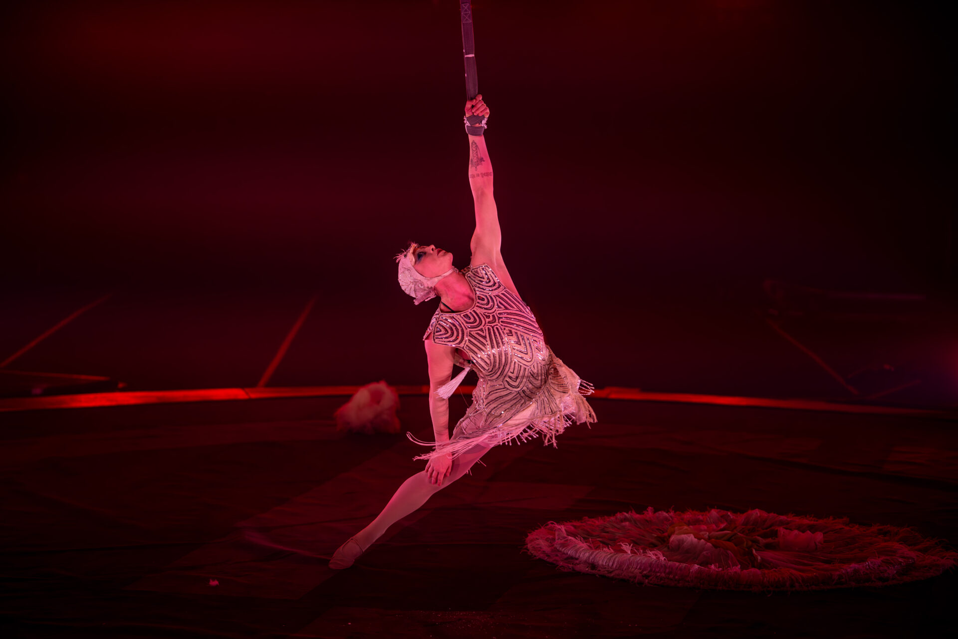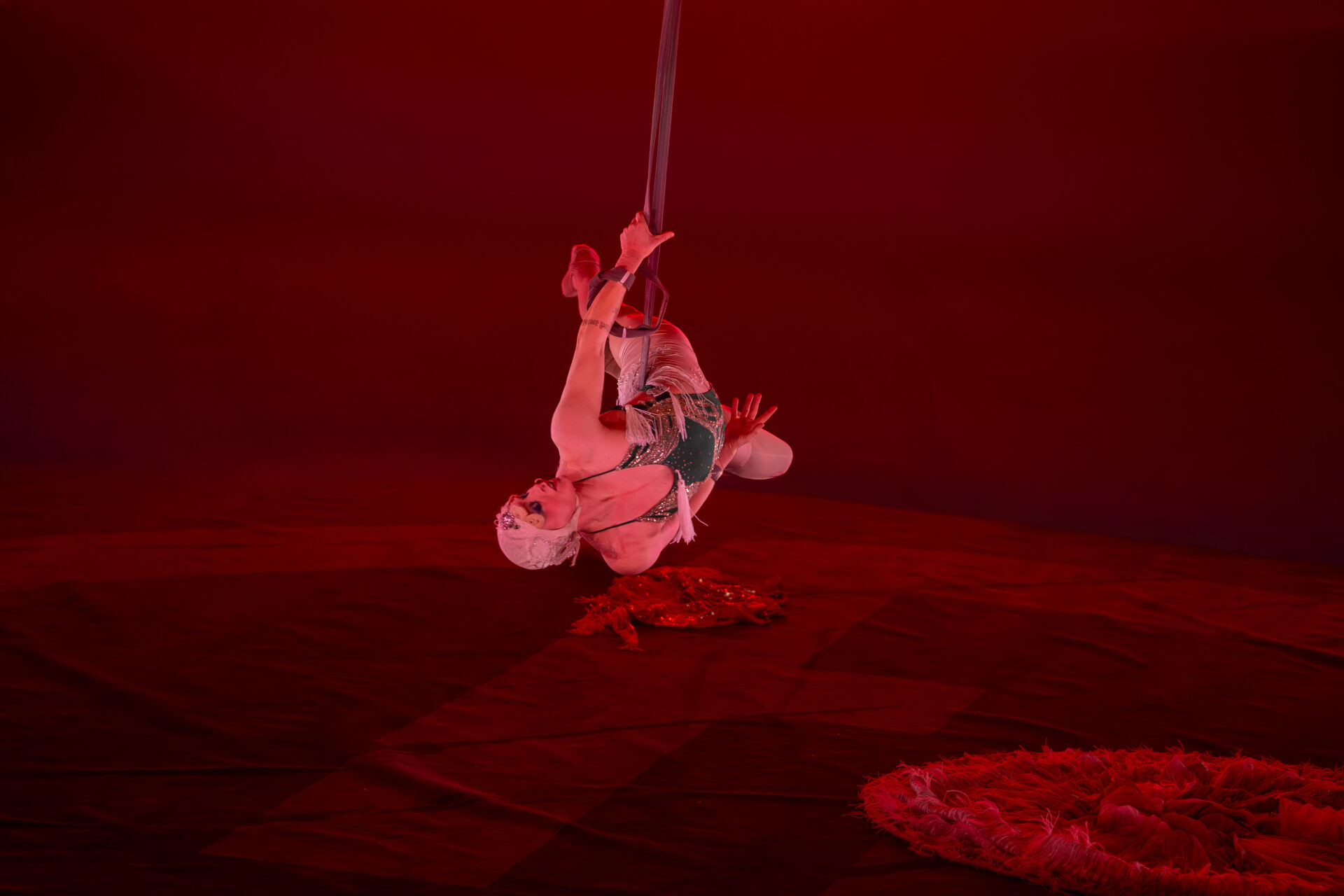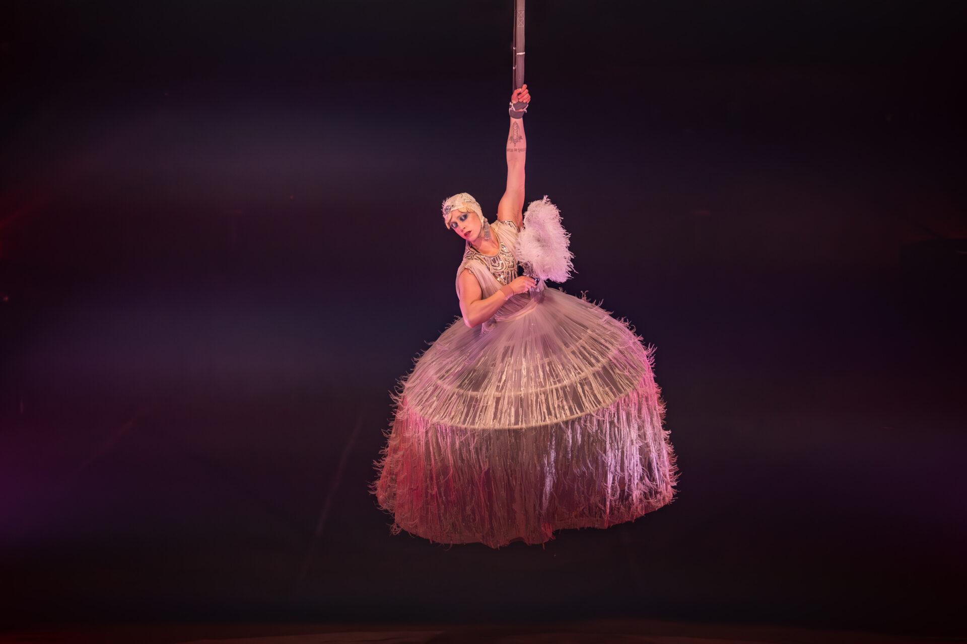 Barbette arbeitet mit maximaler Präzision. In großer Höhe zeigt sie eine konzentrierte, klar strukturierte Nummer, nur an einer Schlaufe hängend. Absolute Körperbeherrschung und exakte Kontrolle bestimmen diese Darbietung, die sich bewusst von den dynamischen Acts abhebt und einen besonderen Spannungsraum schafft – eines der absoluten Highlights des Abends.