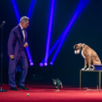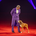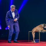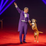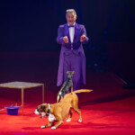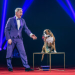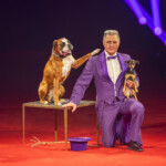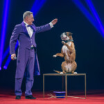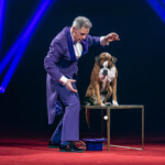 Ein eleganter Dressur-Künstler und sein Boxer bringen die Manege zum Schmunzeln. Der Hund zeigt Kommandos, kleine Tricks und vor allem viel Persönlichkeit. Diese Nummer wirkt warmherzig, humorvoll und absolut publikumsnah – ein echter Wohlfühlmoment.
