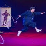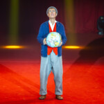 Nun wird es humorvoll. Comedian Fraser Hooper betritt mit übergroßer Tasche und einer Landkarte das Zelt auf der Suche nach der Manege. Seine leicht verwirrte, aber sehr liebenswürdige Art sorgt sofort für viele Lacher. Dieser Auftritt baut eine schöne Brücke zwischen hochkonzentrierter Artistik und spielerischer Unterhaltung.