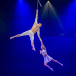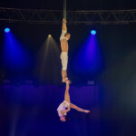 Das Duo Daylight zeigt an den Strapaten eine gefühlvolle, gleichzeitig kraftvolle Luftnummer. Drehungen, Haltepositionen und riskante Fallmomente fügen sich zu einer poetischen Darbietung zusammen, die das Publikum in stille Faszination versetzt.