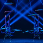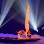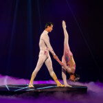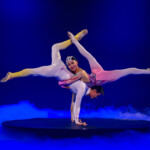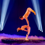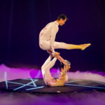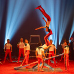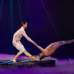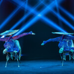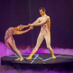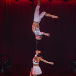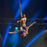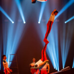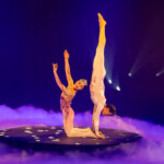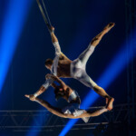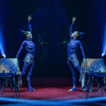 Im Anschluss folgen die Crystal Sisters. Die Zwillingsschwestern Narina und Svetlana Tsodikovi aus Minsk balancieren Tücher kunstvoll und ausschließlich mit Händen und Füßen. Die absolut synchronen Bewegungen wirken wie ein Spiegelbild. Besonders beeindruckend ist die Kontrolle, mit der sie große, glitzernde Tafeln durch die Luft „tanzen“ lassen. Man hört förmlich, wie das Publikum den Atem anhält.