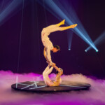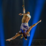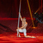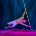 Im Anschluss zeigt Genia Tykhonov am Pole eine Darbietung voller Kraft und Kontrolle. Er bewegt sich am senkrechten Mast, als gehöre er selbst dazu. Jede Haltung wirkt klar und sauber. Die Mischung aus Muskelspannung und Eleganz macht diese Performance zu einem stillen Highlight.