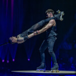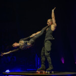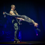 Direkt danach geht es ohne Atempause weiter. Zwei Rollschuh-Paare wirbeln gleichzeitig auf getrennten Plattformen über die Bühne. Während eines der Paare hohe Fliehkräfte in eleganten Kreisfiguren zeigt, setzt das andere auf klare, kraftvolle Bewegungen. Die Kombination aus Licht, Nebel und Geschwindigkeit schafft eine mitreißende Spannung. Man merkt, dass das Publikum hier sofort wach ist und jede Sekunde genießt.