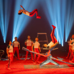 Zum Abschluss der Acts zeigt die Truppe Zunay noch einmal ihre Energie. Bei den ikarischen Spielen fliegen Artisten in hohen Bögen durch die Luft, drehen sich, landen punktgenau und starten erneut.