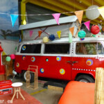 Im Außenbereich gibt es verschiedene Sitzplätze und Grillstellen. Bei meinem Besuch wurde zusammen gegrillt und es gab gute Livemusik. Die internationalen Gäste fanden schnell zusammen und feierten diese tropische Sommernacht zusammen. Um 22.00 Uhr wurde es etwas ruhiger. Ab 23.00 Uhr gilt in der Halle Nachtruhe. Wer länger zusammen sitzen möchte kann dafür einen der im Außenbereich aufgestellten Busse nutzen. Gut durchdacht!