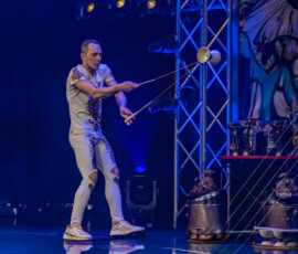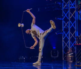 Danach brachte Anton Shcherbyna mit seinem Diabolo-Act Tempo und Virtuosität in den Saal. Jonglage im 21. Jahrhundert: rasant, technisch brillant und mit charismatischer Bühnenpräsenz. Ein Act, der eindrucksvoll zeigte, wie zeitgemäß und mitreißend Jonglage heute sein kann.