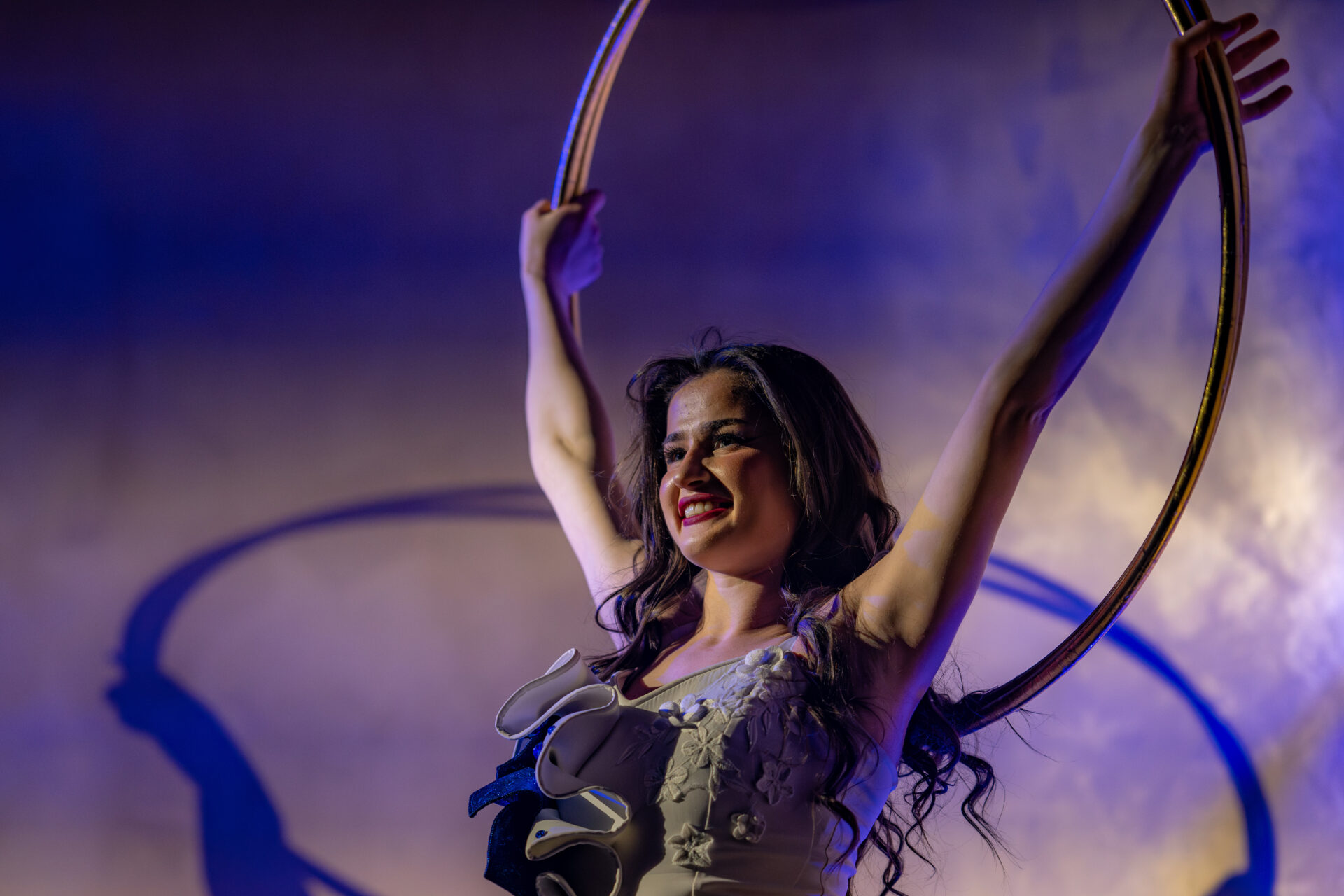 Olha Rezekina zeigte, wie man mit Hula-Hoops nicht nur jongliert, sondern Geschichten erzählt. Ihre Performance lebte von Rhythmus, Geschwindigkeit und einer ansteckenden Bühnenpräsenz, die sich innerhalb weniger Sekunden auf den ganzen Saal übertrug. Ihre Reifen wurden zu rotierenden Linien im Raum – präzise, verspielt und überraschend.