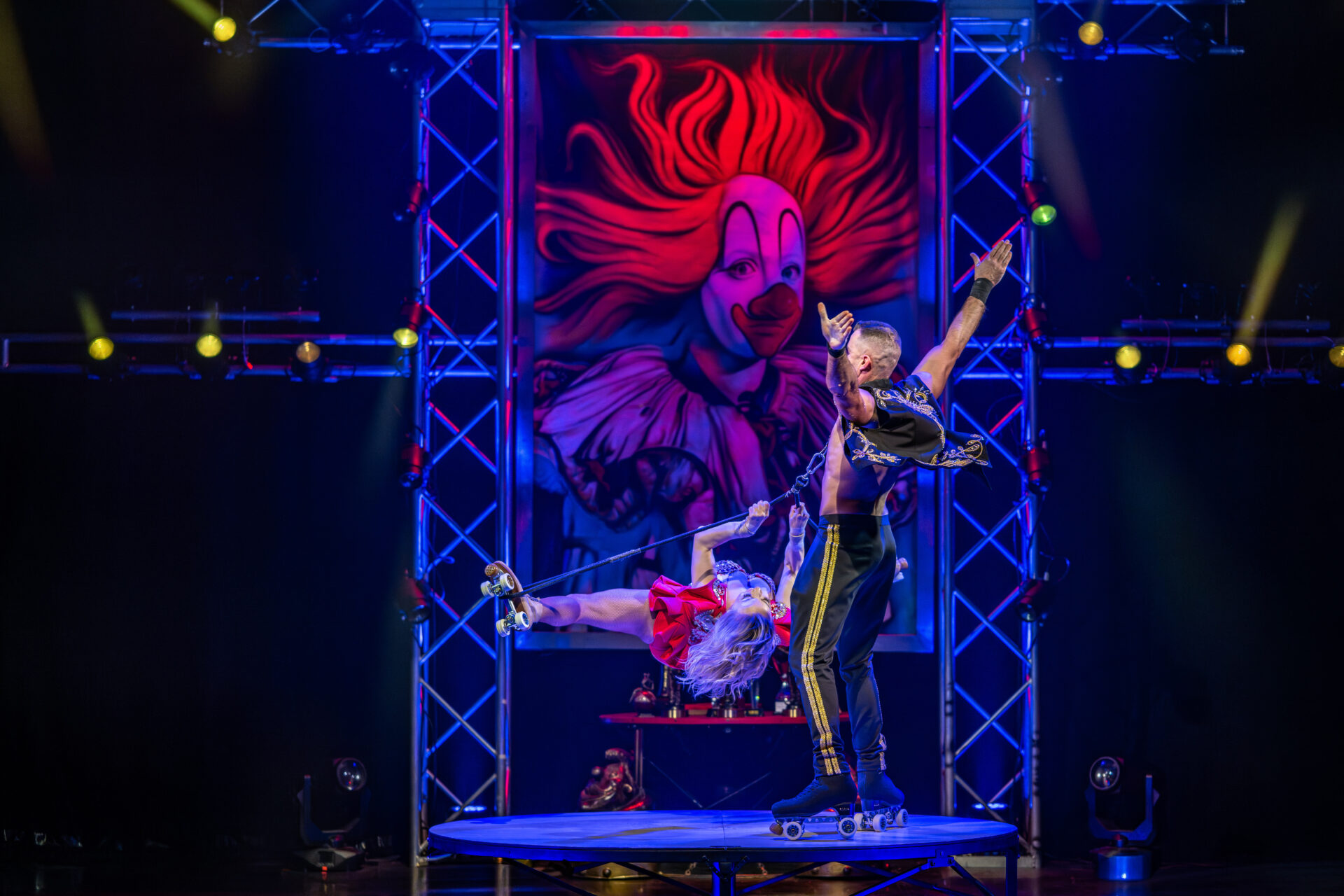 Zum Abschluss des artistischen Programms zeigten Oleksii Khrystolyubov & Liliia Mala eine Rollschuh-Akrobatik, die die Bühne sprichwörtlich in Rotation versetzte. Rasant, waghalsig, mit rotierenden Hebefiguren und blitzschnellen Sequenzen, die das Publikum in Atem hielten. Ein Act, der Tempo und Risiko zu Hochspannung verband.