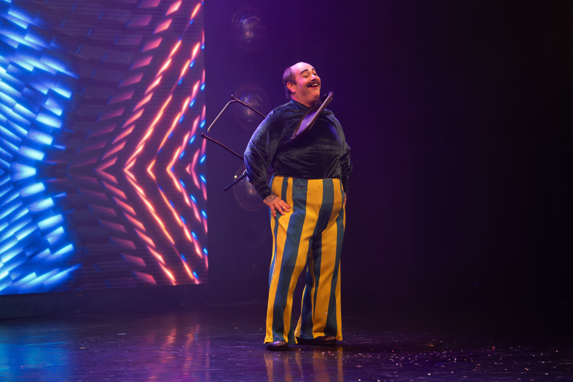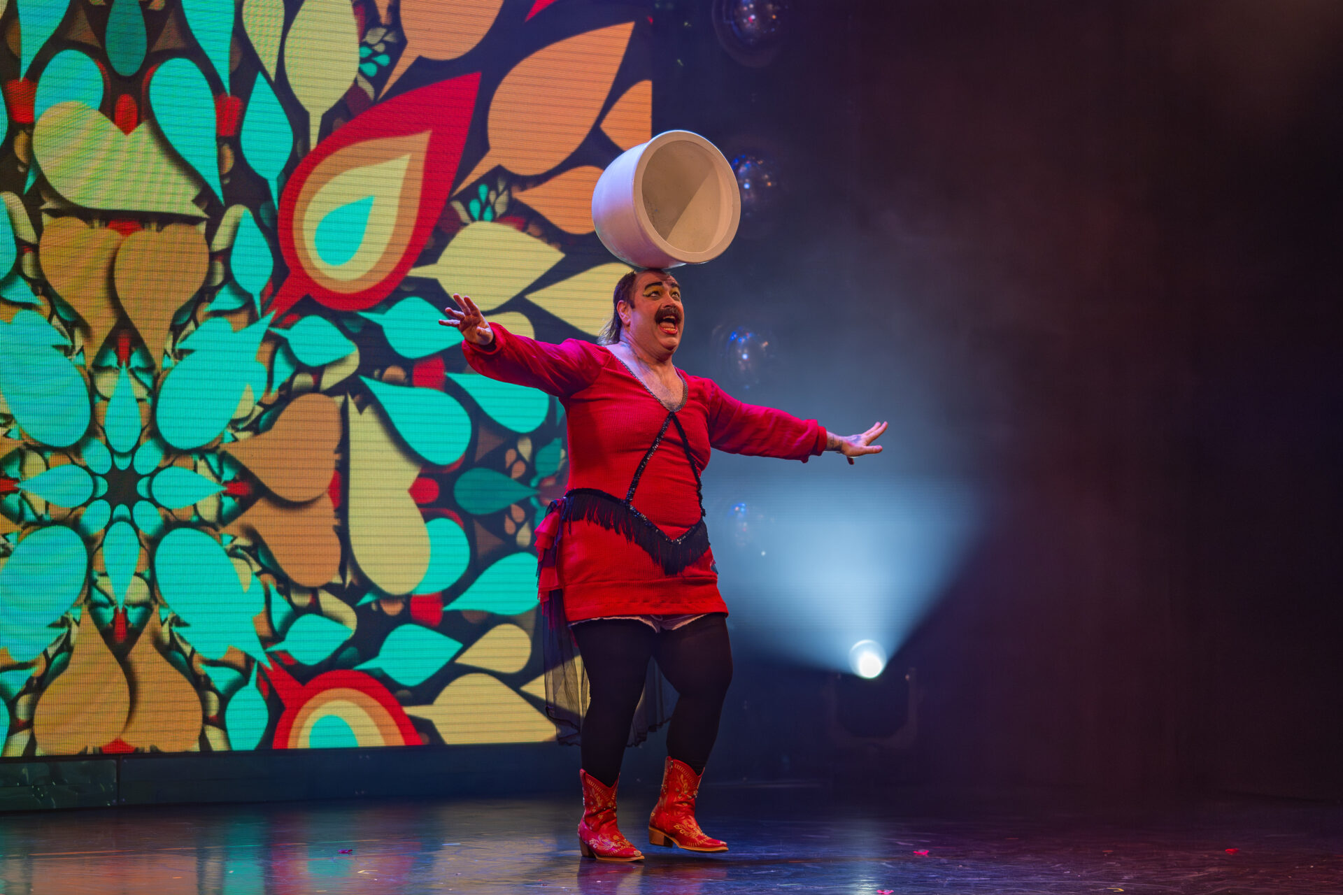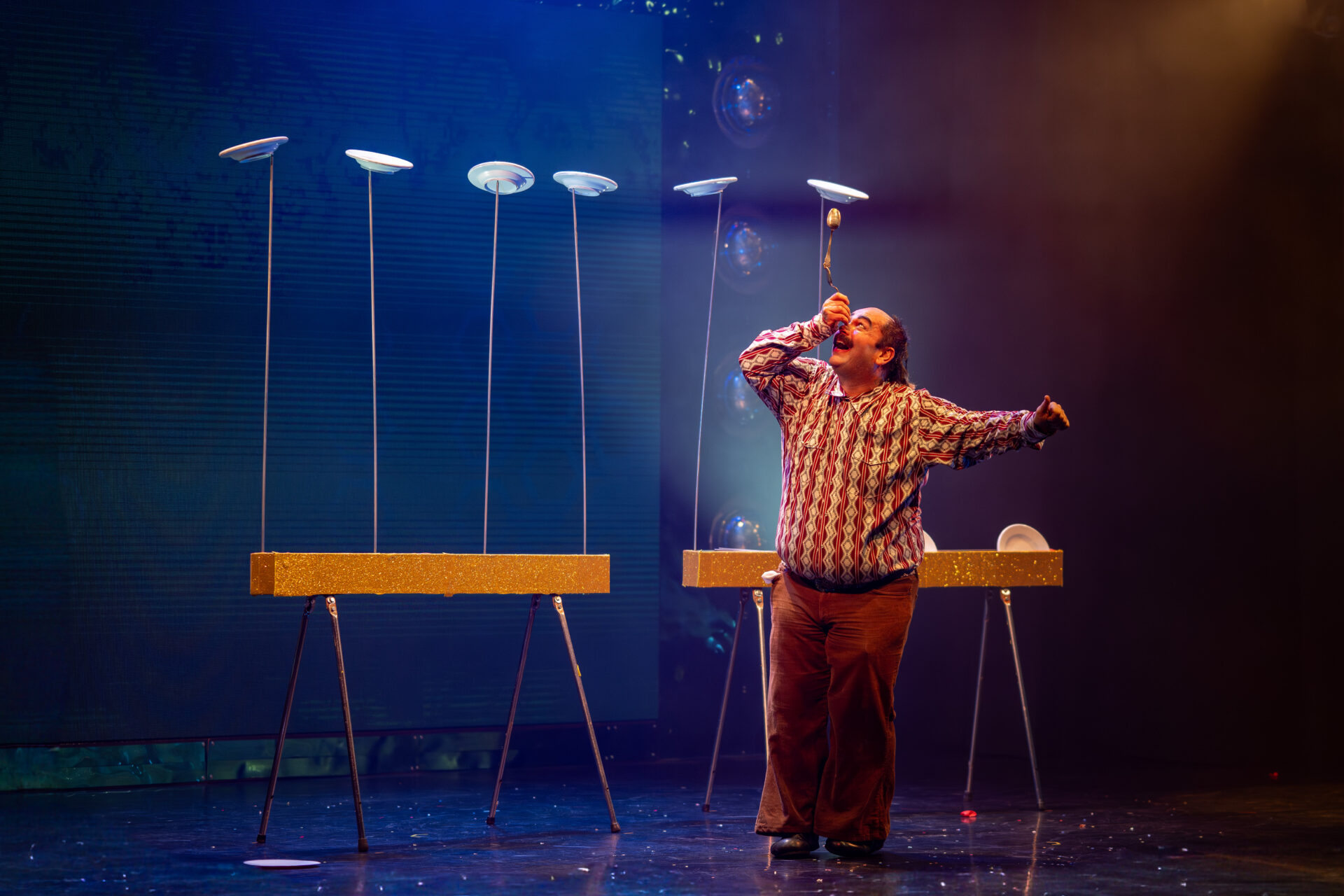 Auch Komik hat Platz im Disco-Universum: Faeble Kievman mischt Clownerie mit feinen Zwischentönen. Ob Slapstick, Requisiten oder Publikumsspiel – seine Szenen sorgen für herzhaftes Lachen und genau jene Momente der Zartheit, die eine Show rund machen.