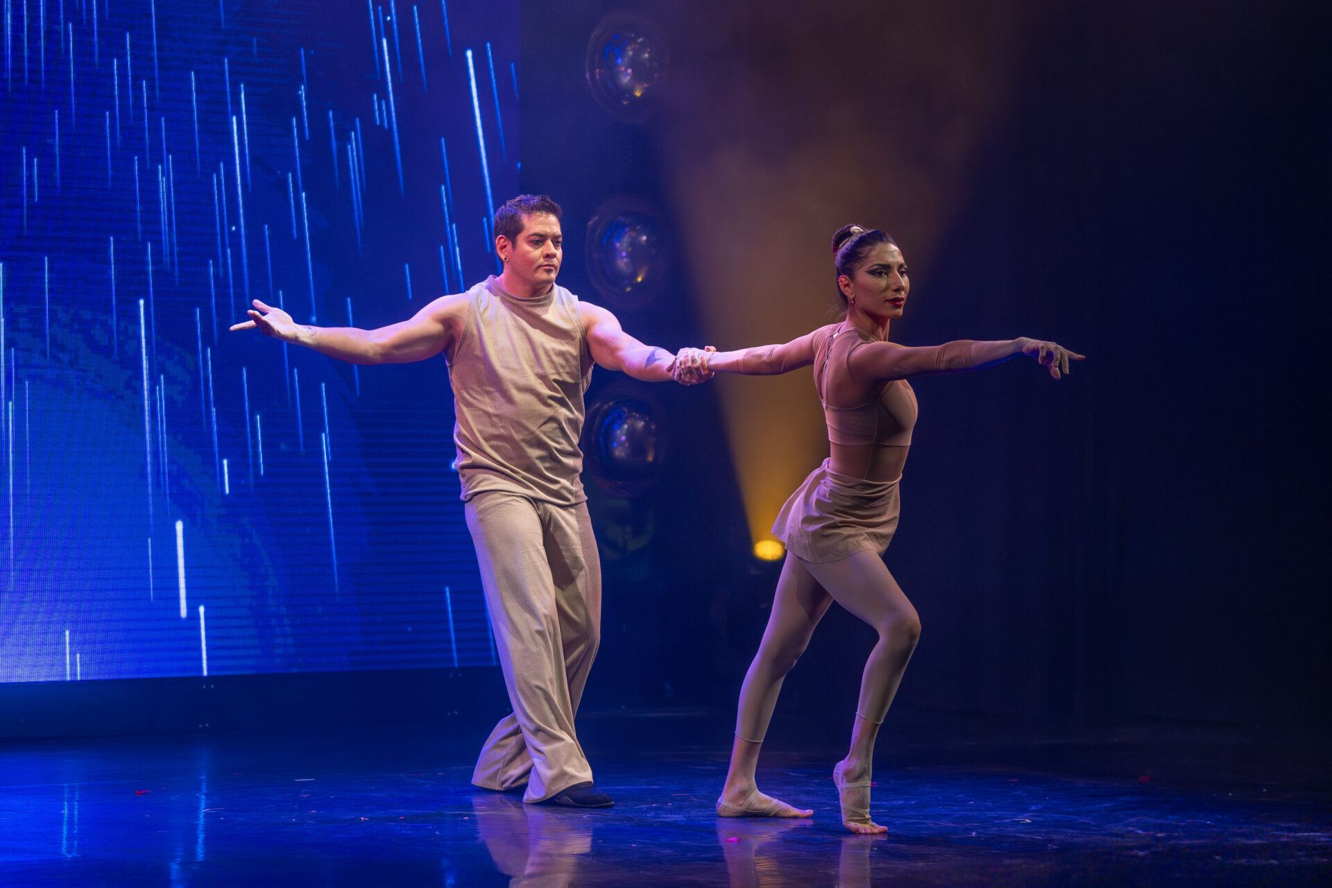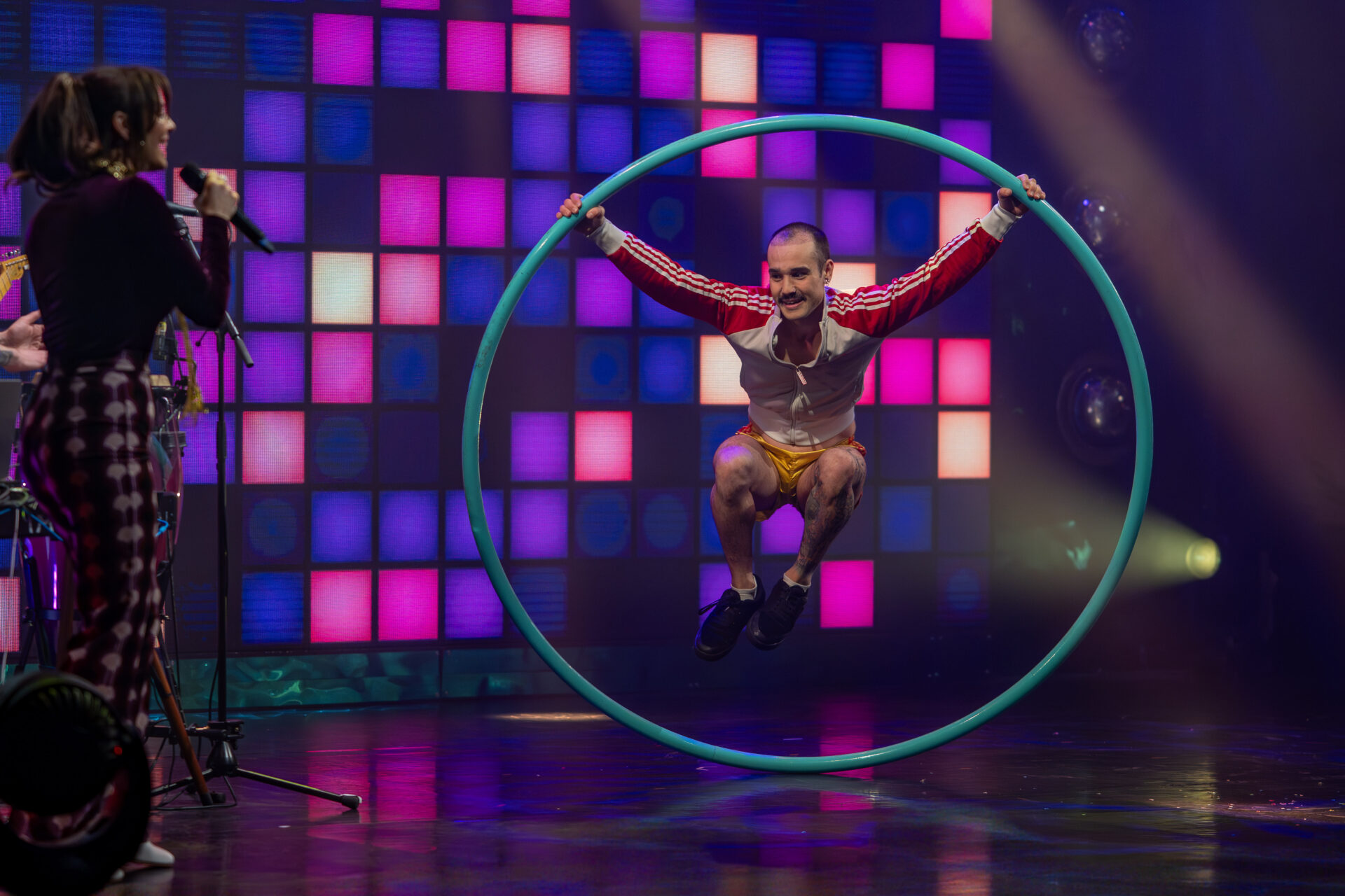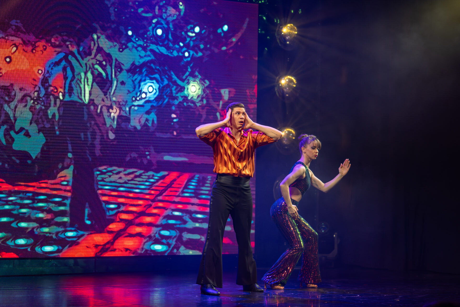Mit beeindruckender Partnerakrobatik zeigt Duo Oscilante (Nallely Vargas Lima & Emiliano Gallardo Núñez), wie körperliche Kraft, Ästhetik und Gleichgewicht verschmelzen können. Ihre Figuren sind exakt, ihre Momente intensiv – ein starker Kontrast zu den glitzernden Discoelementen der Show.