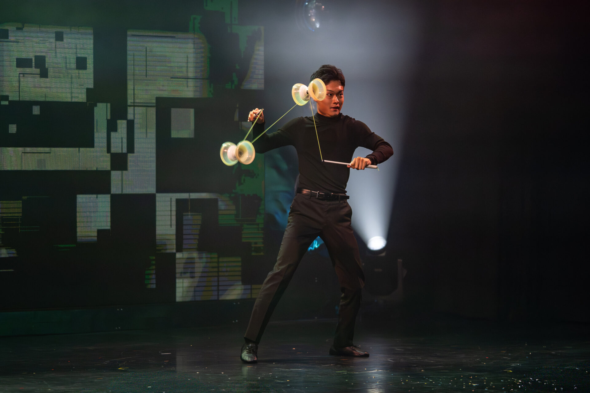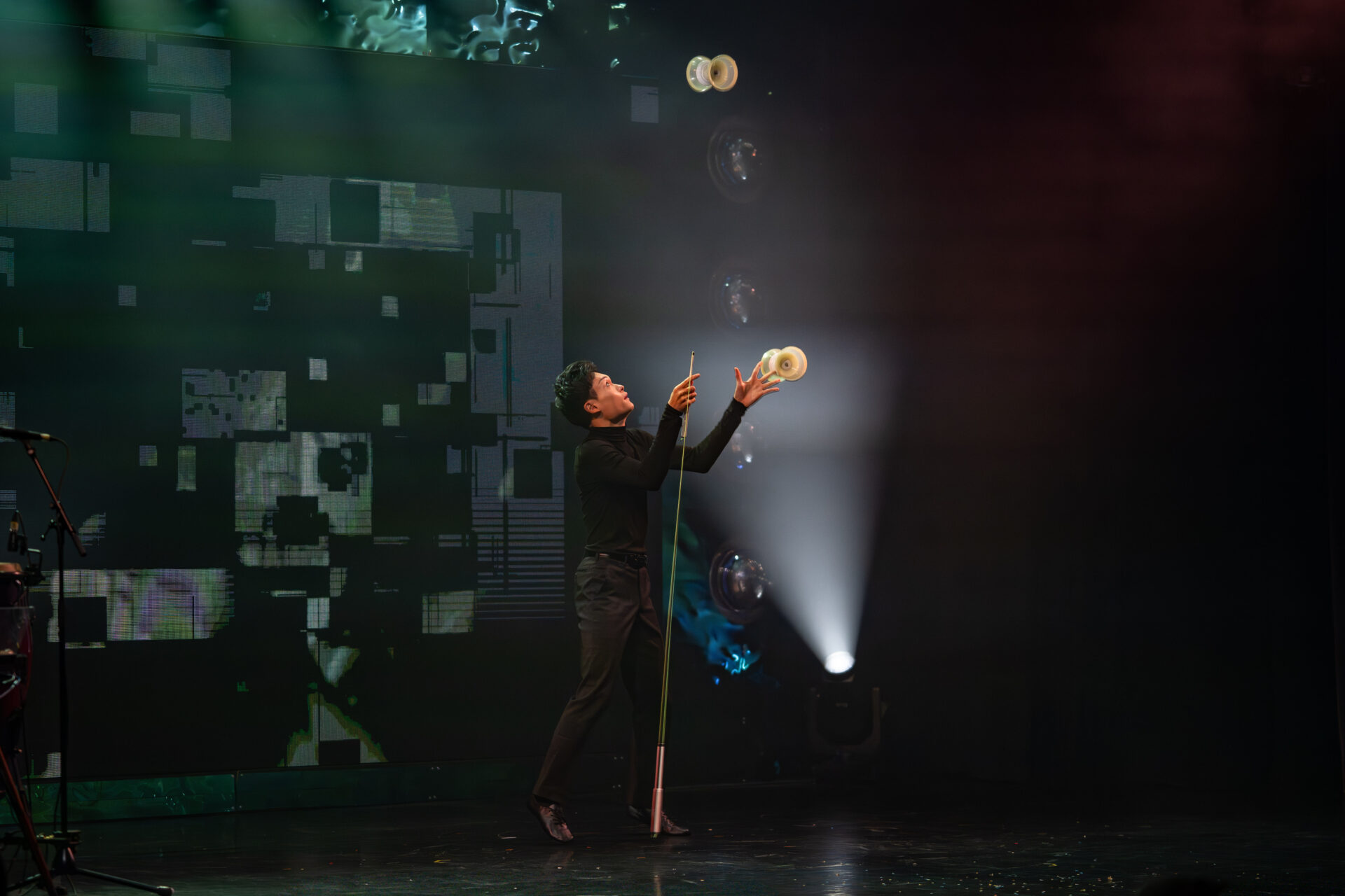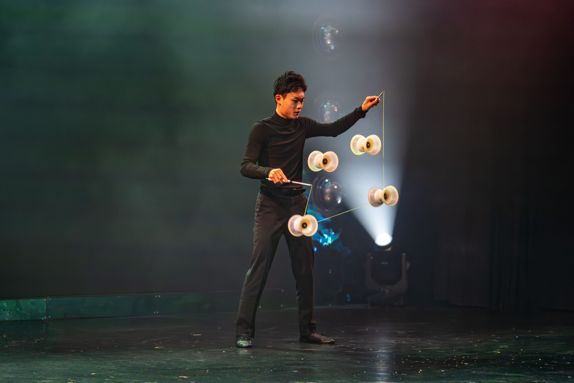 Virtuos, präzise und hypnotisch: Hiromiki Torii verwandelt den Diabolo in ein schwebendes Kunstobjekt. Mit musikalischem Gespür zeichnen die rotierenden Spulen Linien und Muster in die Luft. Eine elegante Symbiose aus Rhythmus, Technik und Timing.