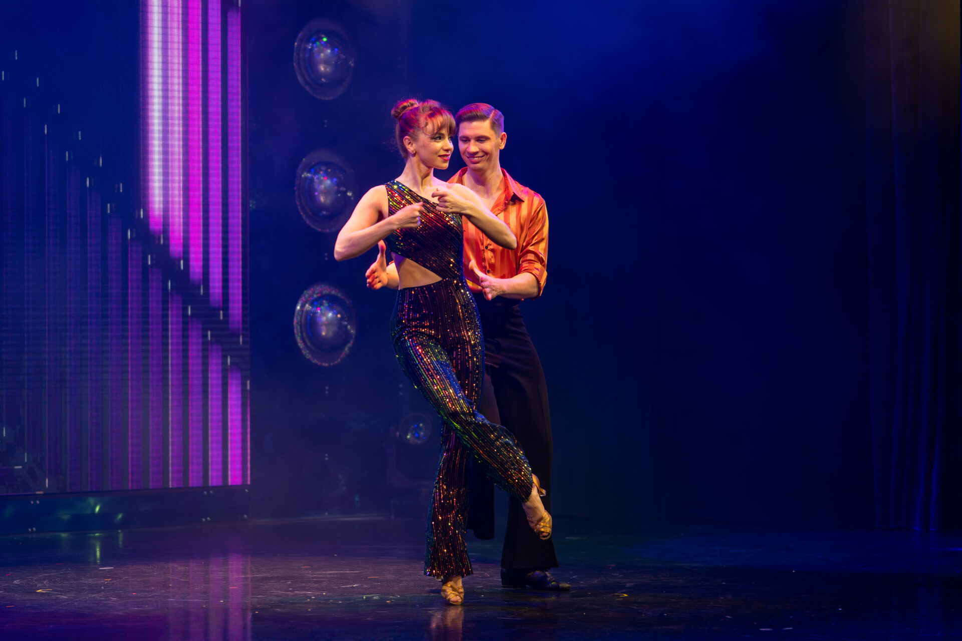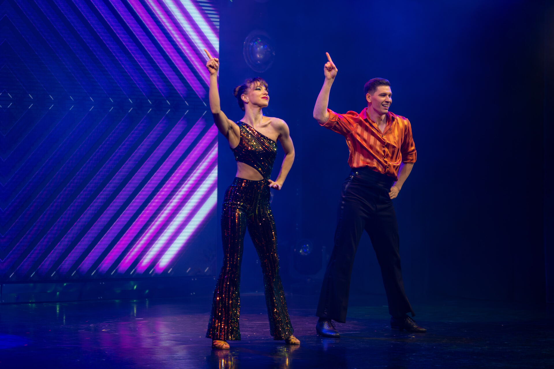 Später verschmelzen Stilrichtungen: Disco trifft Contemporary trifft Klassik. Viktoriia Fedak & Volodymyr Koval erzählen mit Bewegungen, Blicken und Dynamik von Leidenschaft und Freiheit. Sie zeigen, dass Tanz im Varieté nicht nur Dekoration ist, sondern Emotion.