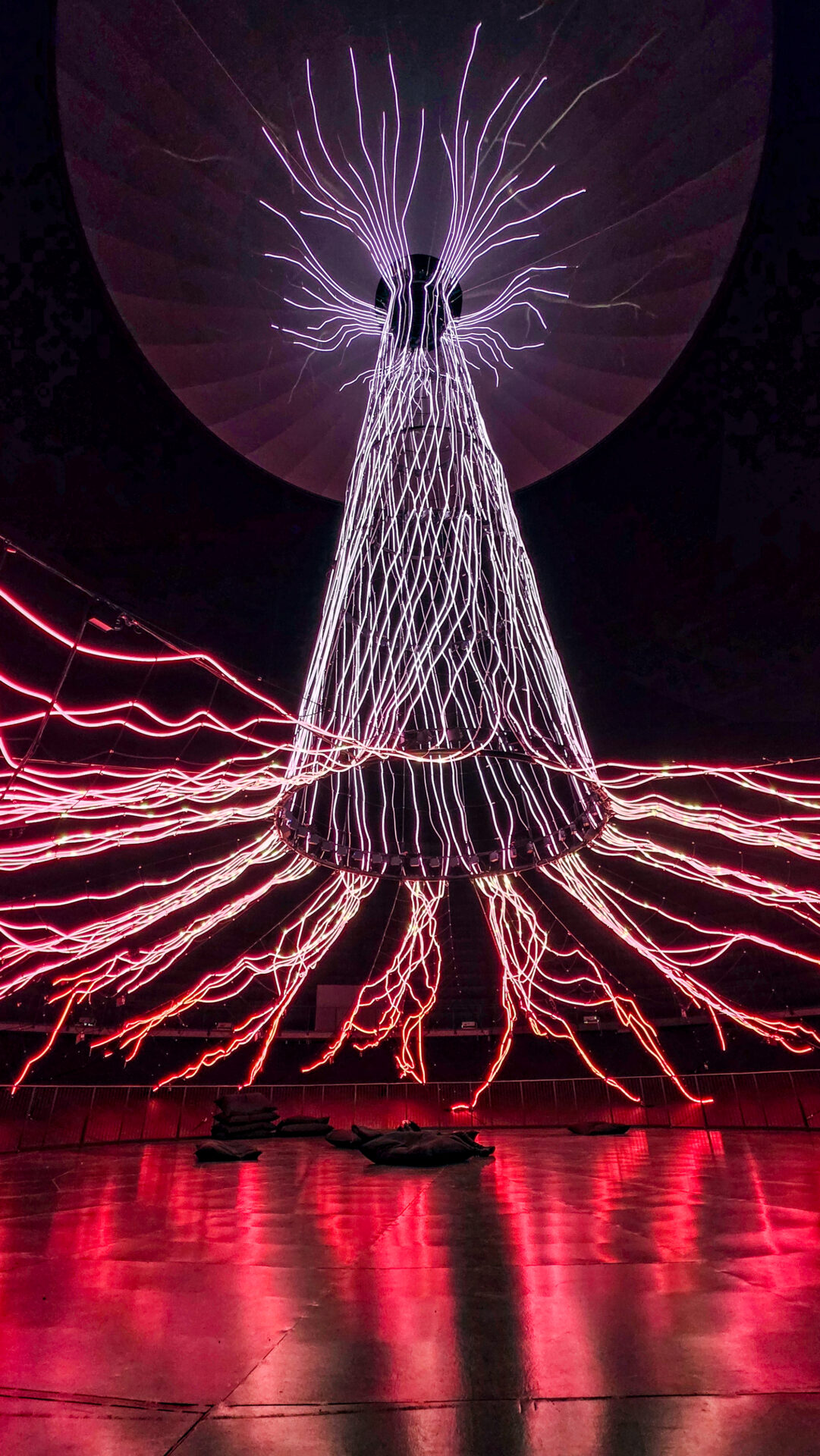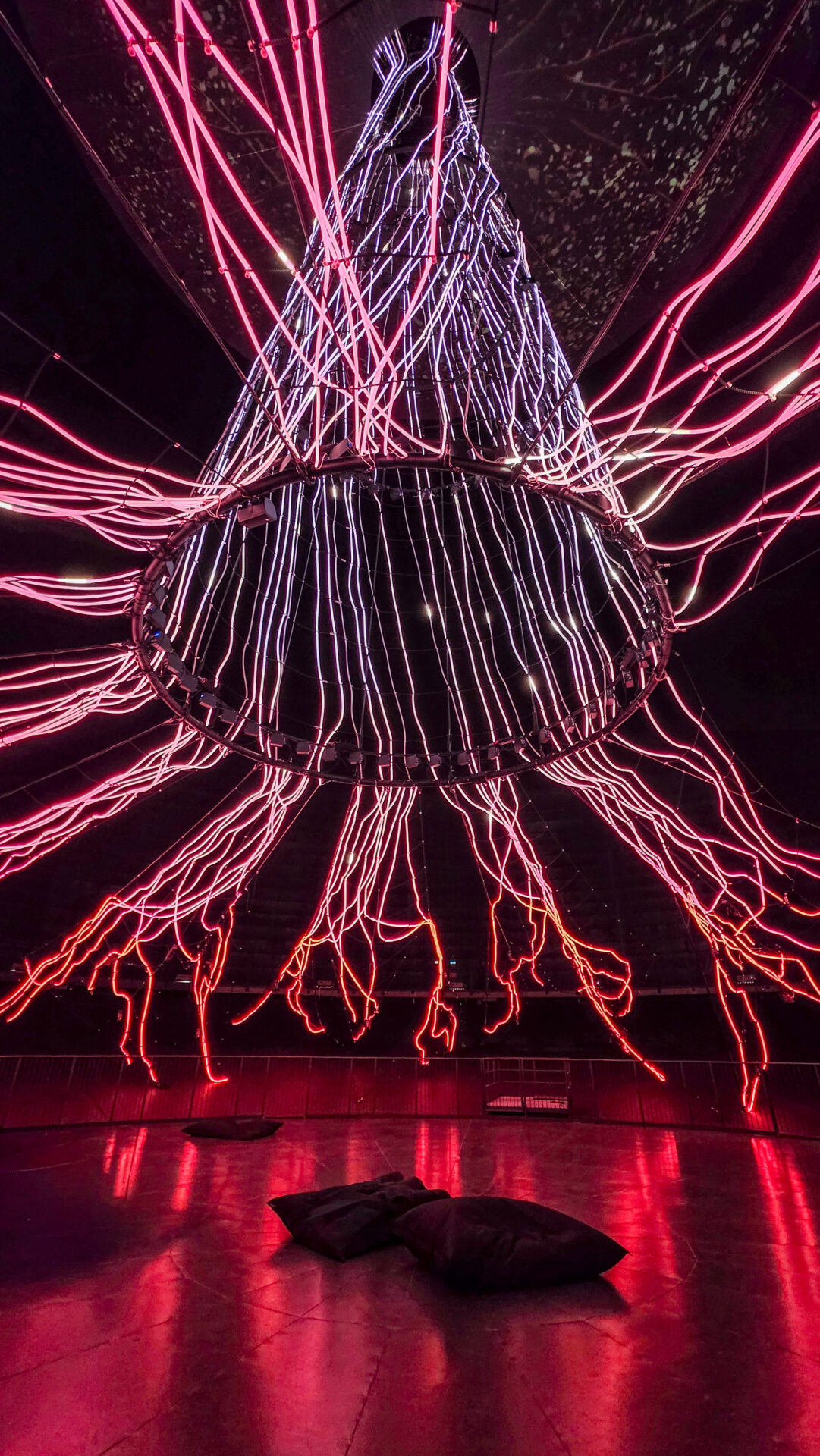 Man steht darunter, blickt nach oben in die scheinbar endlose Baumkrone – und verliert komplett das Gefühl für Raum und Zeit. Licht bewegt sich, pulsiert, verändert sich.