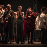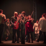 Die Musik unter der Leitung von Sergej Sweschinski gibt der Show ihren unverwechselbaren Klang. Sweschinski, der selbst am Kontrabass auf der Bühne steht, komponiert träumerische Melodien, die den sakralen Raum perfekt ergänzen. Begleitet wird er von Jana Mishenina, deren Geige eine besondere Emotionalität in die Inszenierung bringen, sowie von Nastja Schkinder am Akkordeon und der Drehorgel. Anja Krips beeindruckt auch in Angelo mit ihrer kraftvollen und gefühlvollen Stimme. Als Mitbegründerin des Cirque Bouffon ist sie seit vielen Jahren ein prägender Teil der Shows. Die vielseitige Künstlerin, die auch als Choreografin und Dozentin tätig ist, verbindet in ihrem Gesang Stärke und Emotion auf einzigartige Weise.
