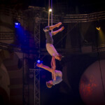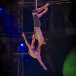 Auch Johanna Gorzellik fasziniert: Ihre eleganten Handstände und die Choreografien an den Strapaten wirken schwerelos und poetisch. Gab Drouin beeindruckt mit einer rasanten Performance am Cyr-Rad, die durch Präzision und Dynamik besticht. Die Jonglage von Tom Lacoste gibt Gelegenheit, etwas durchzuschnaufen. Doch sein humorvoller Umgang mit dem Diabolo und unerwartete „special Effects“ zaubern Jedem ein Lächeln ins Gesicht. Nata Galkina begeistert mit ihrer außergewöhnlichen Kunst der Fußjonglage. Mit beeindruckender Präzision lässt sie Ringe, Reifen und Rollen scheinbar mühelos durch die Luft wirbeln. Ihre Füße bewegen sich dabei so elegant, dass es fast wie ein Ballett wirkt.