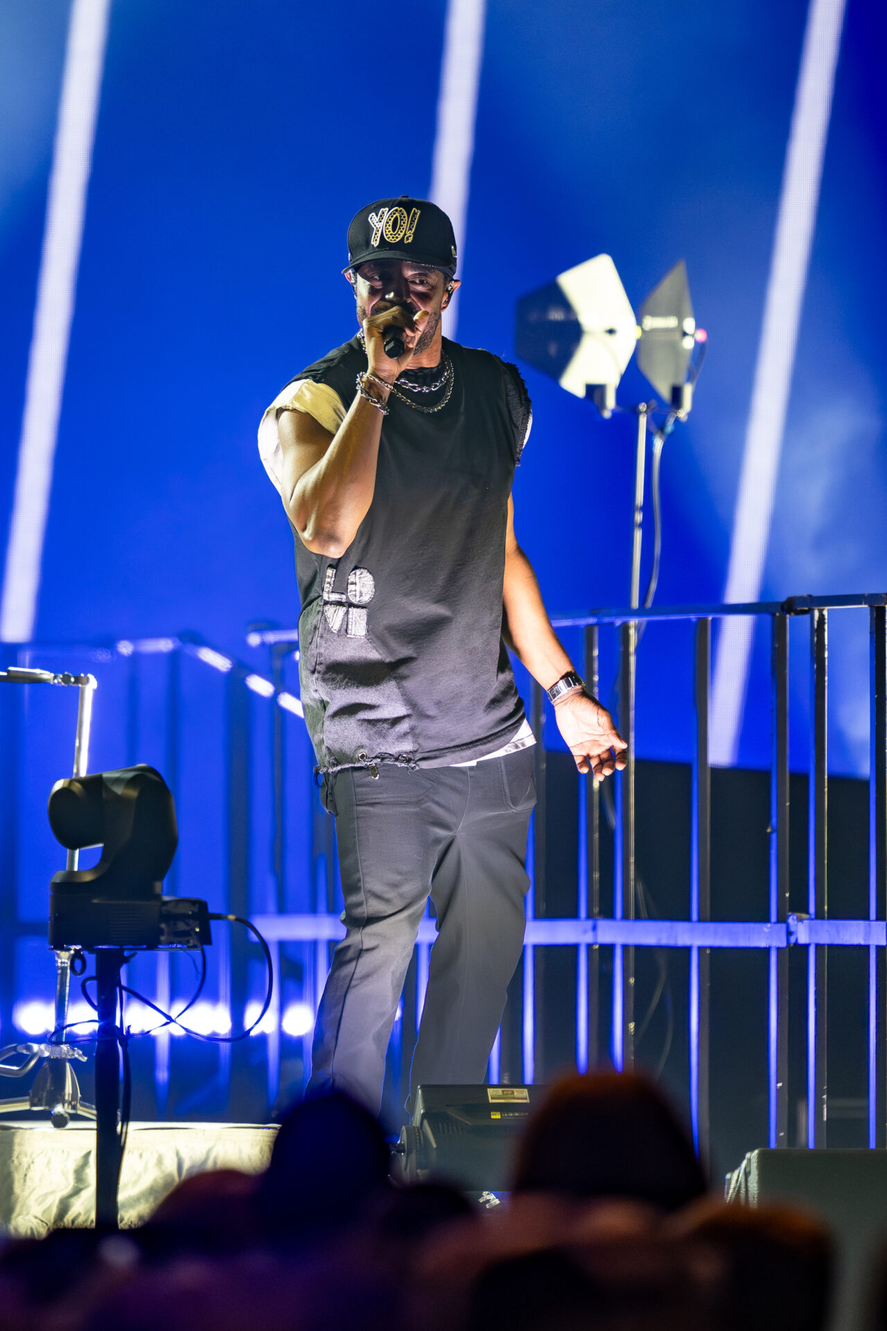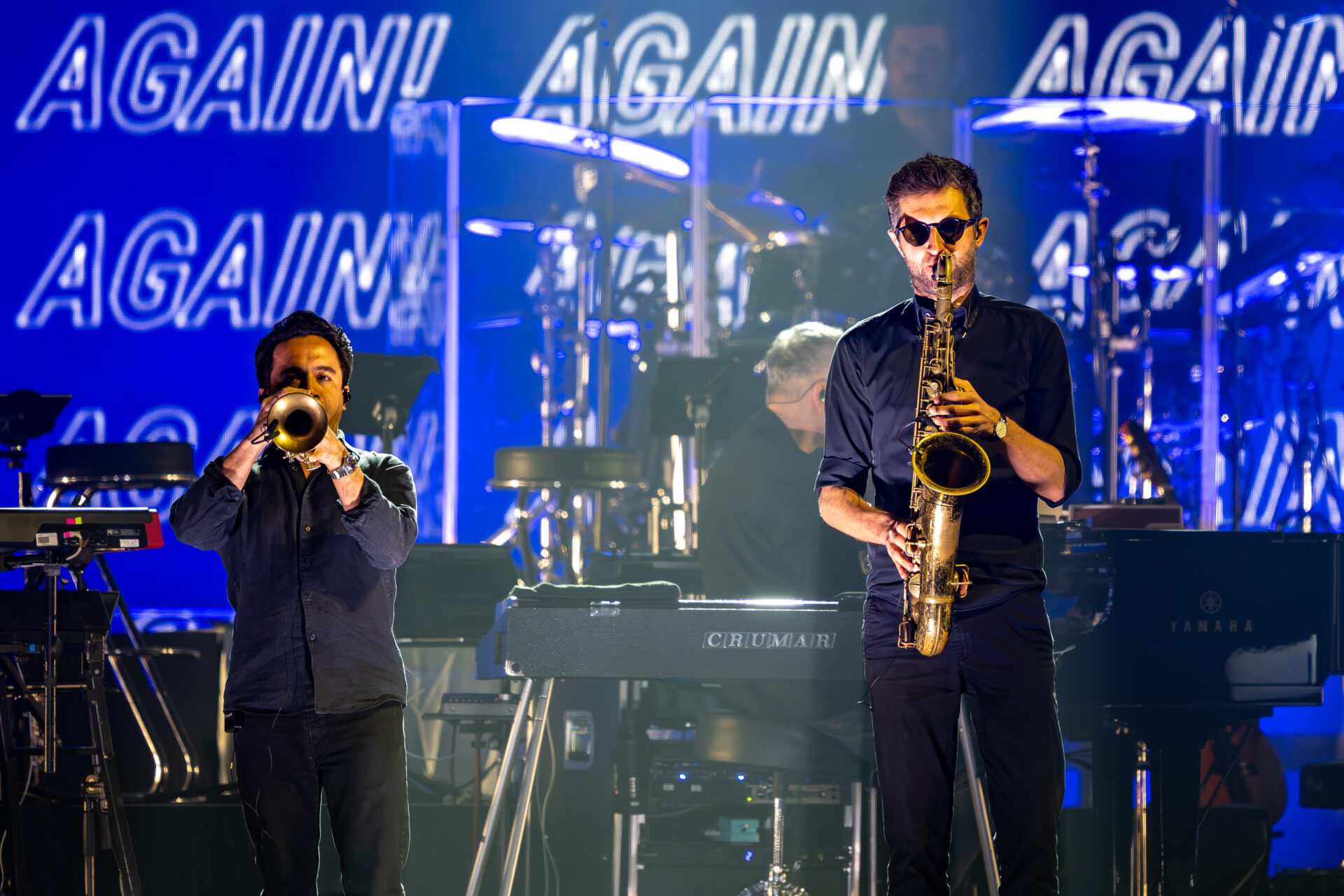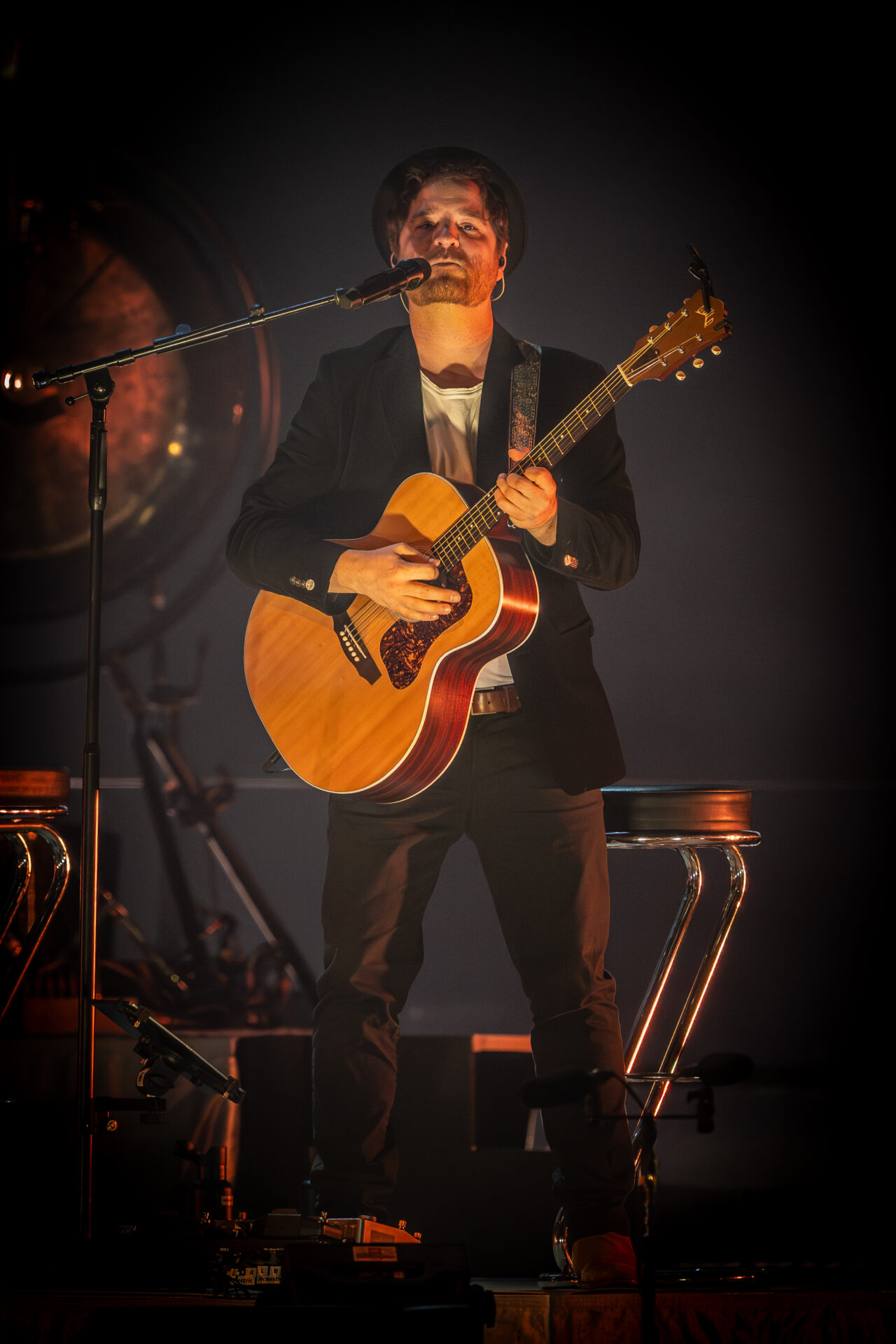 Mit „Let’s Do It Again“ startet ein ganz besonderer Abend. Carpendale – ganz in Schwarz, mit Glitzerschal und Sneakers – wirkt zugleich elegant und nahbar. Eine große LED-Wand zeigt Livebilder, das durchdachte Lichtkonzept begleitet das gesamte Konzert: Der Sänger warm und hell im Fokus, die Band in farbiges Licht getaucht – eine Bühne mit beeindruckender Tiefe.