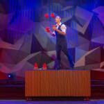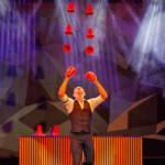 • Bruno Macaggi zeigt Jonglage in einer Geschwindigkeit und Präzision, die atemberaubend ist. Mit seiner akrobatischen Fingerfertigkeit lässt er Becher, Bälle und Requisiten in einem verblüffenden Rhythmus durch die Luft fliegen.
